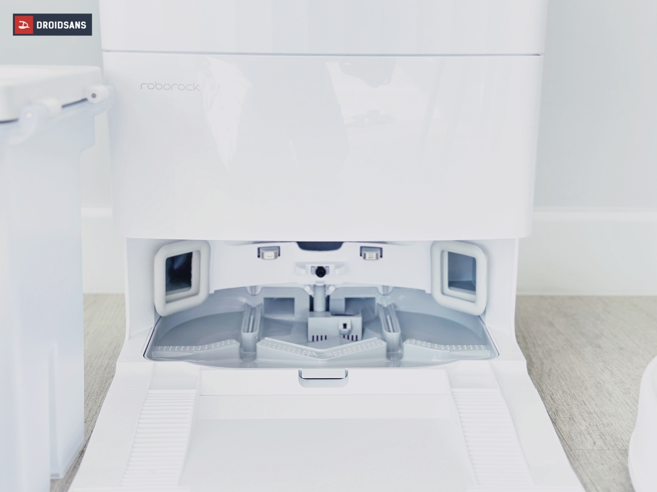 ฟีเจอร์นี้เรียกว่าทำออกมาแก้ปัญหา Pain Point ของหุ่นยนต์ดูดฝุ่นที่มีระบบซักล้างภายในตัวเลยทีเดียว เพราะหลาย ๆ รุ่นมักมาพร้อมกับฐานซักล้างที่ติดอยู่กับสถานีชาร์จ ซึ่งหลาย ๆ ครั้งเมื่อจบงานทำความสะอาด ตัวฐานก็มักจะเปรอะเปื้อนไปด้วยน้ำสกปรกจากการถูพื้น แต่เราก็ทำได้เพียงแค่เช็ดตัวฐาน ทำให้เราแอบหวั่น ๆ ว่ามันจะสะอาดจริงรึเปล่า แต่ในรุ่นนี้เราสามารถแกะฐานแยกออกมาเพื่อไปล้างแบบจัดเต็มได้เลย ไม่ต้องกลัวว่าจะหมักหมดเหมือนก่อนอีกต่อไป