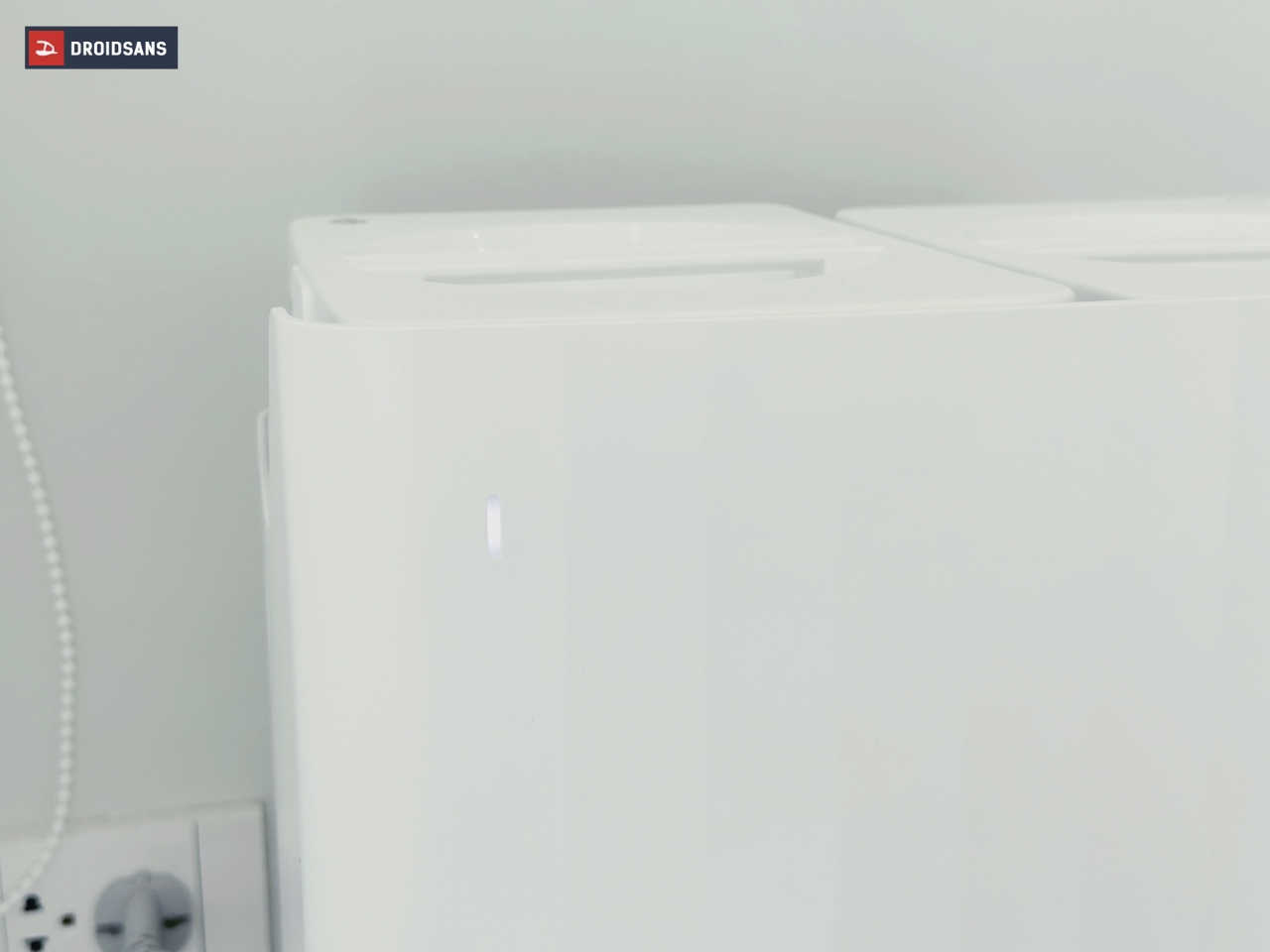 Roborock Q Revo ตัวที่เราได้มานั้นเป็นสีขาวล้วน สถานีชาร์จถูกดีไซน์มาแบบสวยหรูดูดี ครึ่งบนมาในลวดลายคลื่น มีไฟแสดงสถานะทรงแคปซูลเล็ก ๆ อยู่ที่มุมบนขวามือของตัวเครื่อง ส่วนพื้นที่ด้านล่างจะมาในพื้นผิวแบบมันวาว สามารถดึงเพื่อเปิดฝาออกมาได้