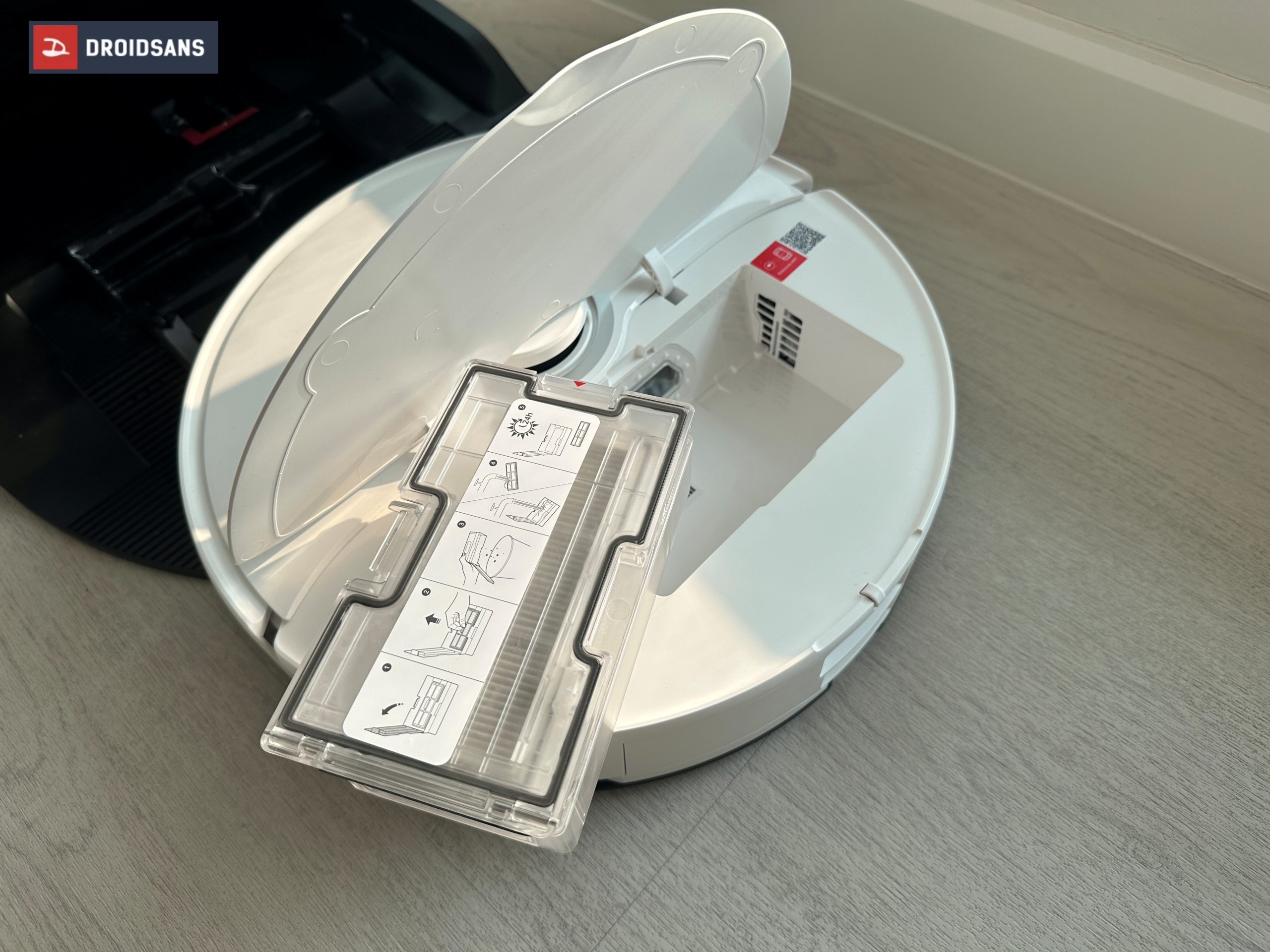 ส่วนพวกแปรง ผ้าม็อบถูพื้นต่าง ๆ ที่ใช้ในหุ่นยนต์ ทางโรงงานจะประกอบเข้ากับตัวเครื่องมาให้เรียบร้อย ไม่ต้องมาคอยประกอบเองให้วุ่นวาย แค่แกะซีลพลาสติก ประกอบฐานเข้ากับสถานีชาร์จ เสียบปลั๊ก เปิดหุ่นยนต์ และเชื่อมต่อแอป ก็สามารถใช้งานได้เลยทันที