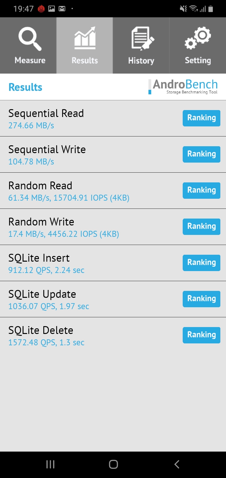 มาทดสอบความไวในการเขียนอ่านไฟล์กับแอป AndroBench กันบ้าง การเขียนการอ่านของ Galaxy A10s อยู่ที่ 274.66 MBps และการเขียน 104.78MBps ขณะที่ Galaxy A20s อยู่ที่ 299.65 MBps และการเขียน 184.27 MBps เรียกได้ว่าต่างกันอยู่พอสมควรเลยล่ะ แต่ก็ไม่ได้มากอะไร เอามาใช้งานจริงๆ ก็ไม่ได้เห็นความแตกต่างอะไร เปิดแอปขึ้นมาได้พร้อมๆ กัน