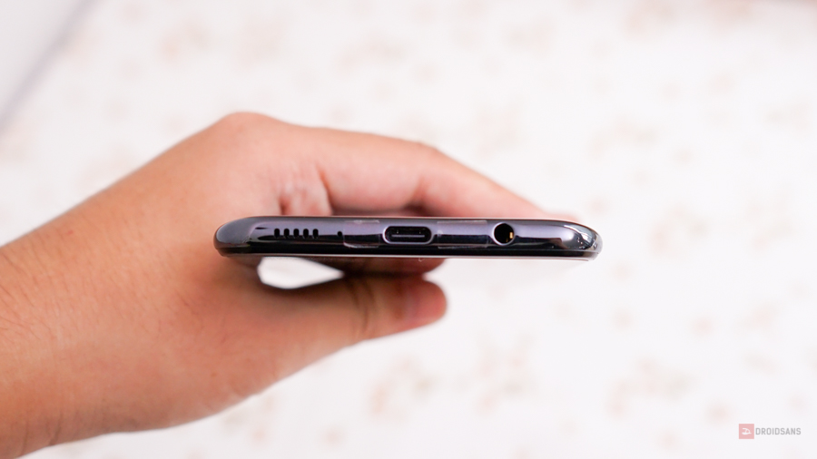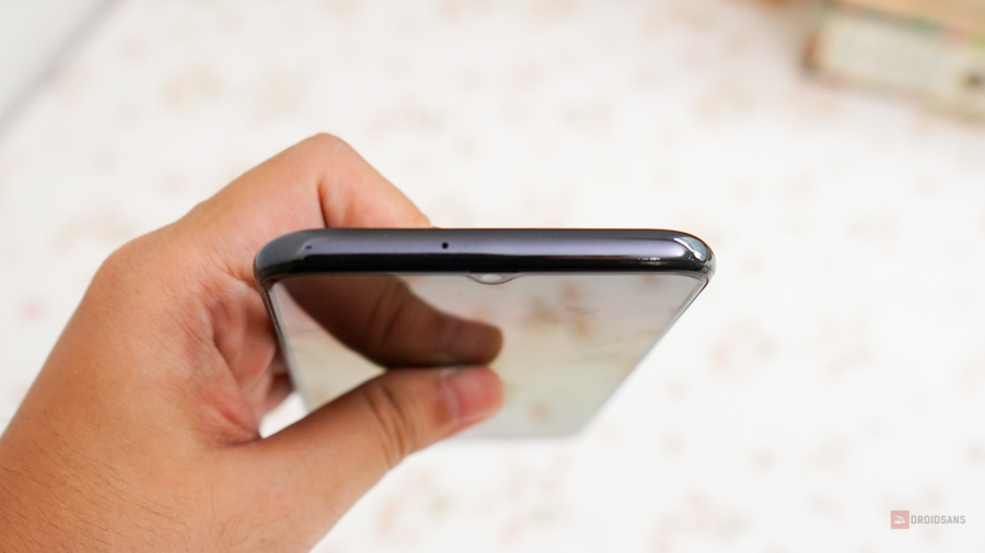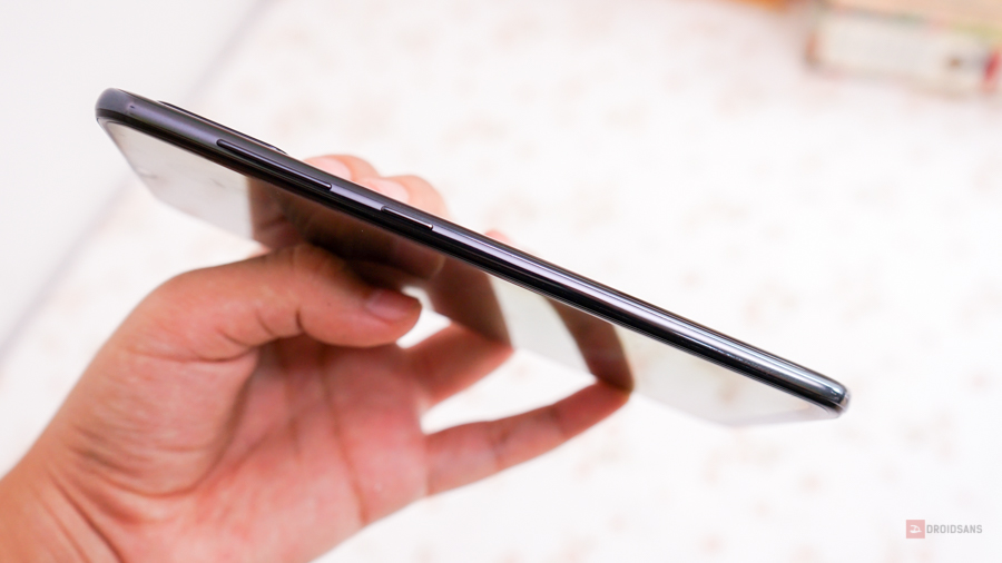 สำหรับเรื่องของดีไซน์ Galaxy A50s บอกกันตามตรงว่าเหมือนกับรุ่น A50 ที่ออกมาก่อนหน้านี้เป๊ะๆ ทั้งการวางตำแหน่งกล้อง หน้าจอ และปุ่มกดต่างๆ สิ่งที่เปลี่ยนไปคือฝาหลังที่ทำลวดลายเป็นสีใหม่เท่านั้น โดยเครื่องที่ทีมงานได้มารีวิวจะเป็นสีดำ ซึ่งสังเกตว่าฝาหลังจะไม่ได้เป็นสีดำสนิท แต่สีดำลายโฮโลแกรมสะท้อนแสงสวยงาม ดูพรีเมียมหรูหรา งานประกอบเนี้ยบแน่นแข็งแรง ผิวสัมผัสไม่ลื่นมือมาก แต่เป็นรอยนิ้วมือค่อนข้างง่ายแนะนำควรใส่เคสเสมอ