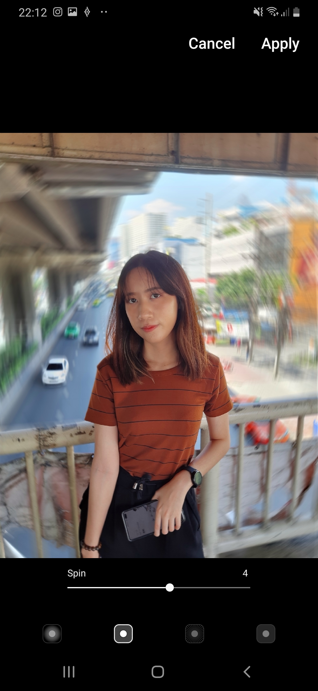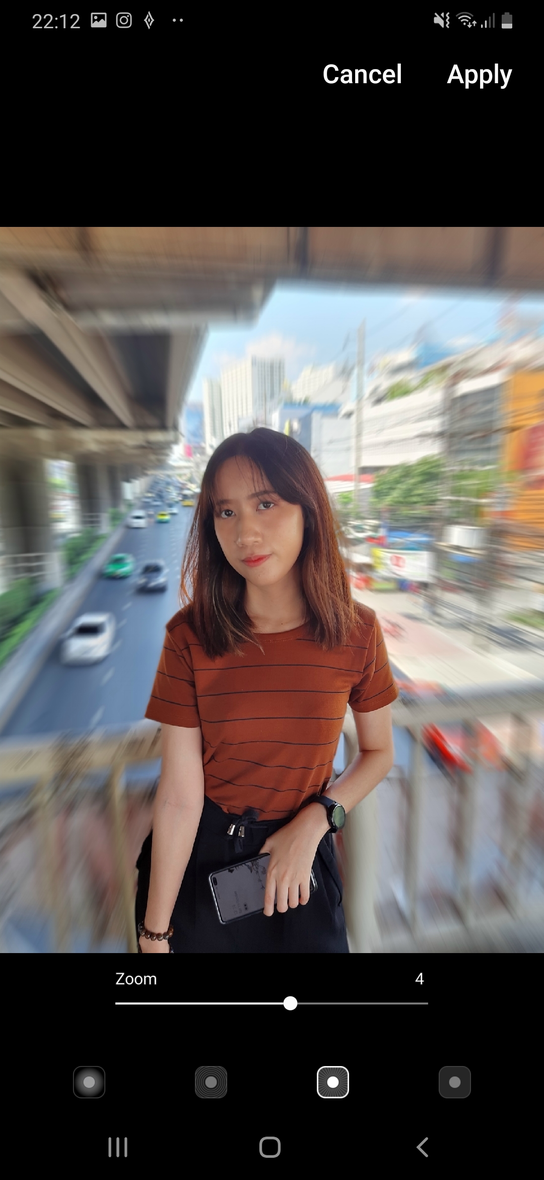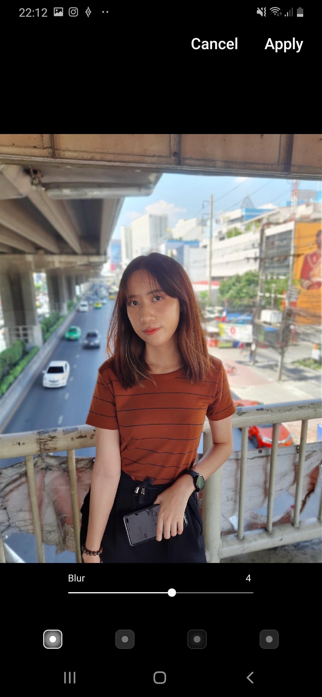 โดยฟีเจอร์ Live Focus บน Galaxy M30s จะไม่มีฟิลเตอร์เบลออะไรให้เลือกตอนกดถ่ายนะครับ แต่เลือกปรับระดับความเบลอได้ หลังจากถ่ายเสร็จ ในแกลลอรี่สามารถเลือกปรับฟิลเตอร์การเบลออะไรได้ทั้งหมด 4 แบบด้วยกัน คุณภาพที่ได้มาถือว่าโอเคเลย ตัดขอบเนียนพอสมควร