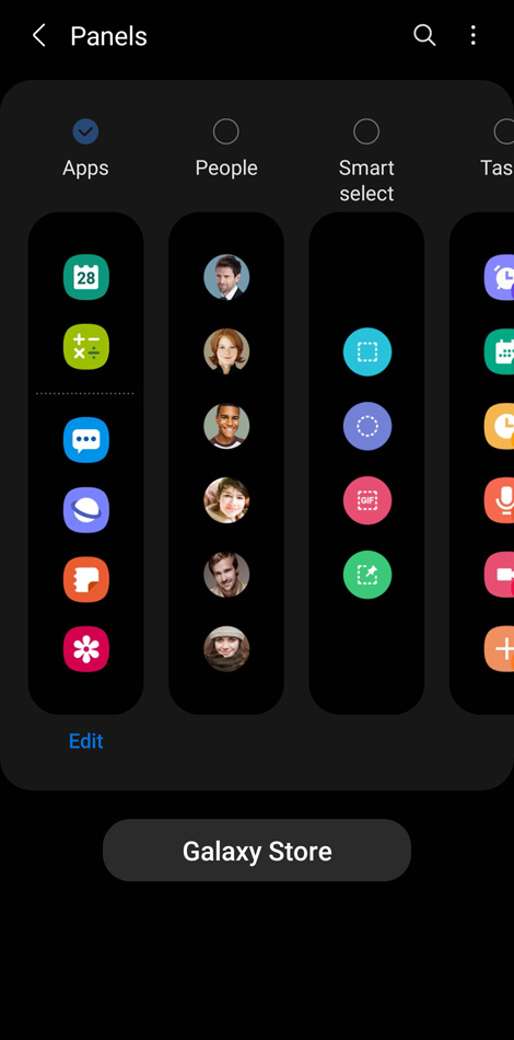 - Edge panels – เรียกทางลัดจากขอบหน้าจอ สามารถจับคู่แอปที่ใช้งานบ่อยเพื่อเปิดในโหมดแบ่งหน้าจอได้ทันที