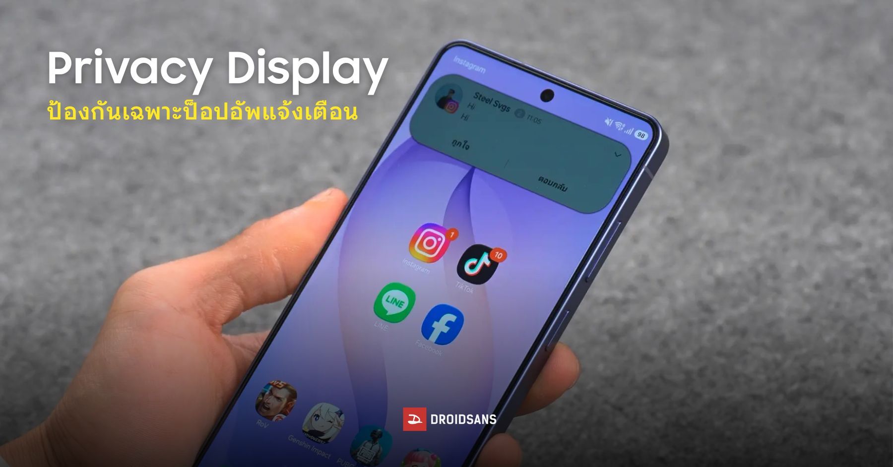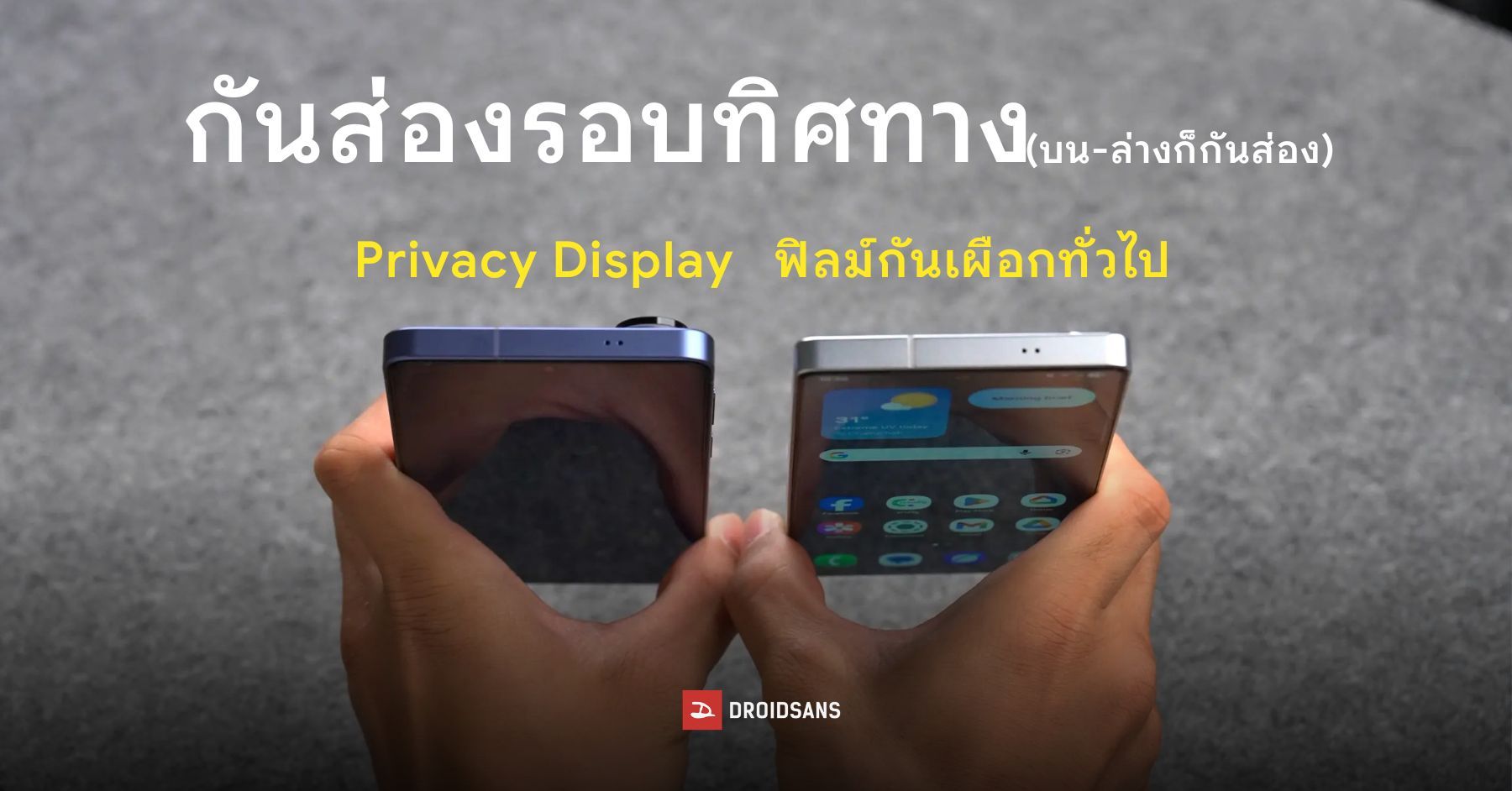 การตั้งค่าหรือการใช้งานแบบละเอียด ‘เมื่อเทียบกับฟิลม์กันเสือกแบบปกติ Privacy Display ดีกว่ายังไง’ เดี๋ยวทีมงาน DroidSans จะมีบล็อกสรุปออกมาให้ดูกันอย่างแน่นอนค่ะ! เบื้องต้นรีวิวครั้งนี้ขอไล่หัวข้อการตั้งค่าเพิ่มเติมอื่น ๆ สำหรับ Privacy Display ก่อนเป็นหลัก
