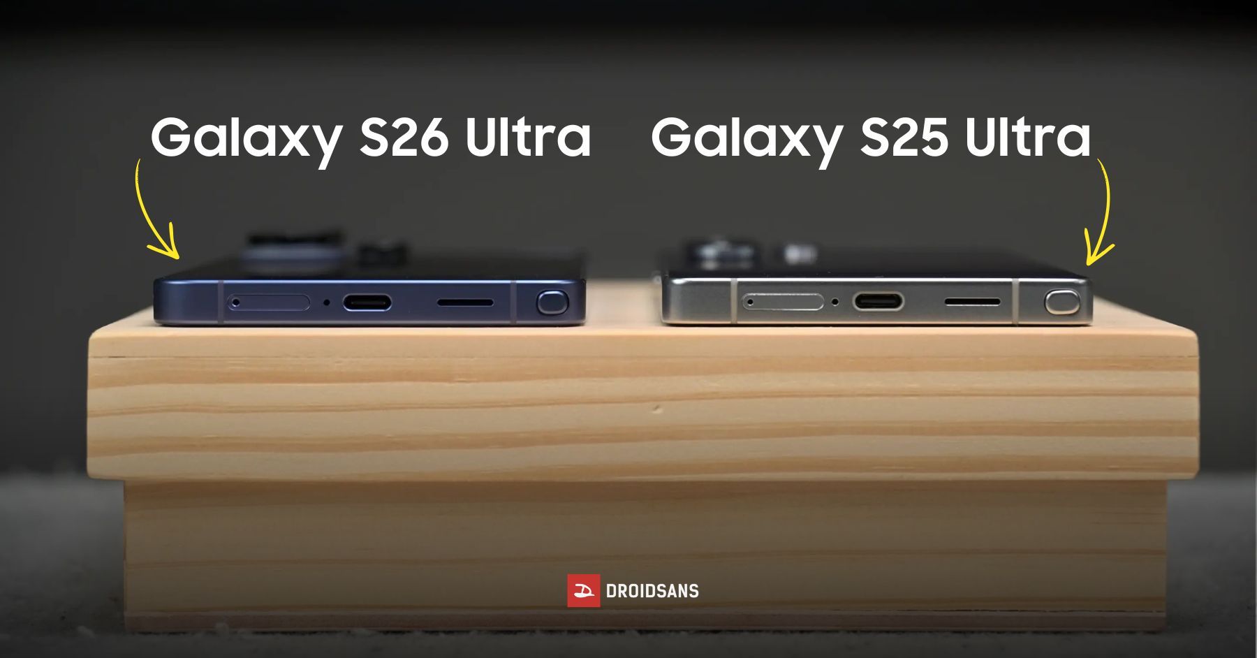 ที่สำคัญคือในครั้งนี้ Galaxy S26 Ultra ปรับให้มุมเครื่องโค้งมนมากขึ้นกว่าเดิม หากเทียบกับ Galaxy S25 Ultra ก็จะเห็นได้แบบชัดเจน ส่วนตำแหน่งของปุ่มหรือพอร์ตเชื่อมต่อต่าง ๆ เช่น ปุ่มพาวเวอร์, ปุ่มเพิ่ม-ลดเสียง ยังคงอยู่ในตำแหน่งเดิม