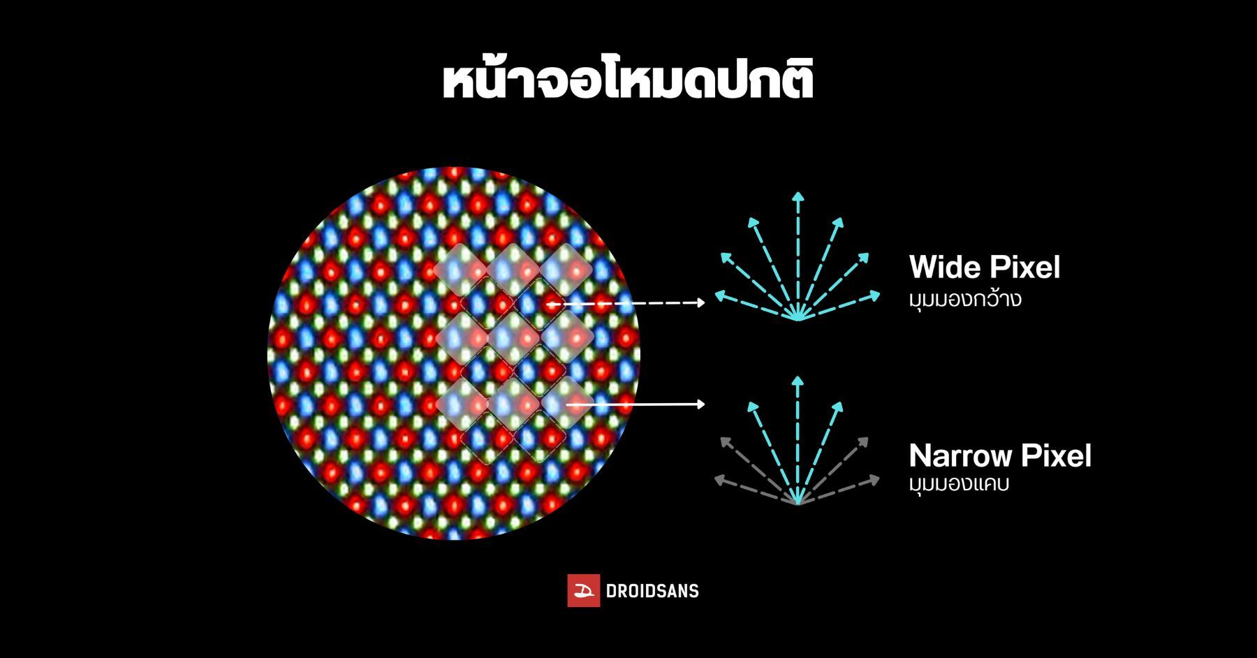 - Narrow Pixel : พิกเซลมุมแคบที่มองเห็นได้ในมุมมองจำกัด