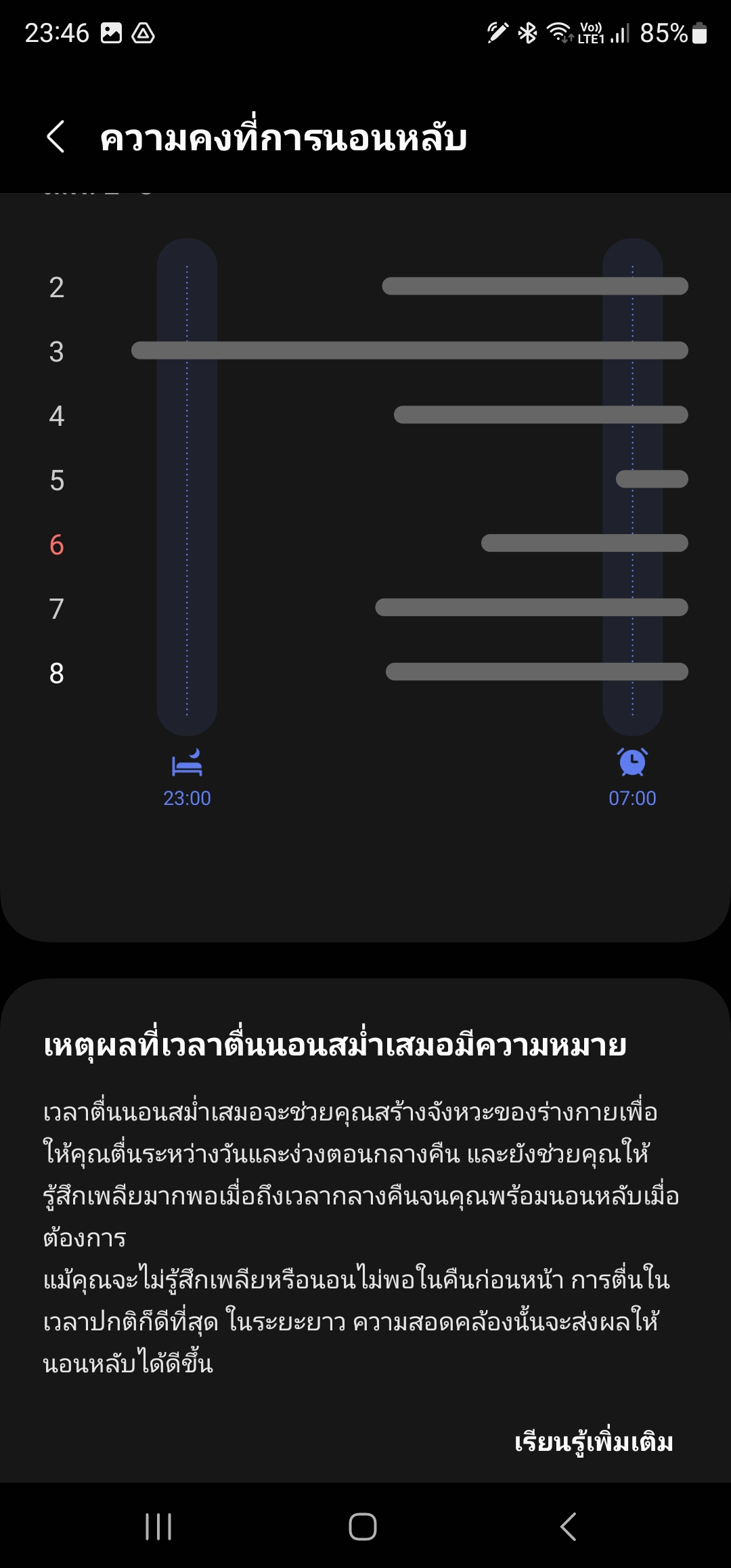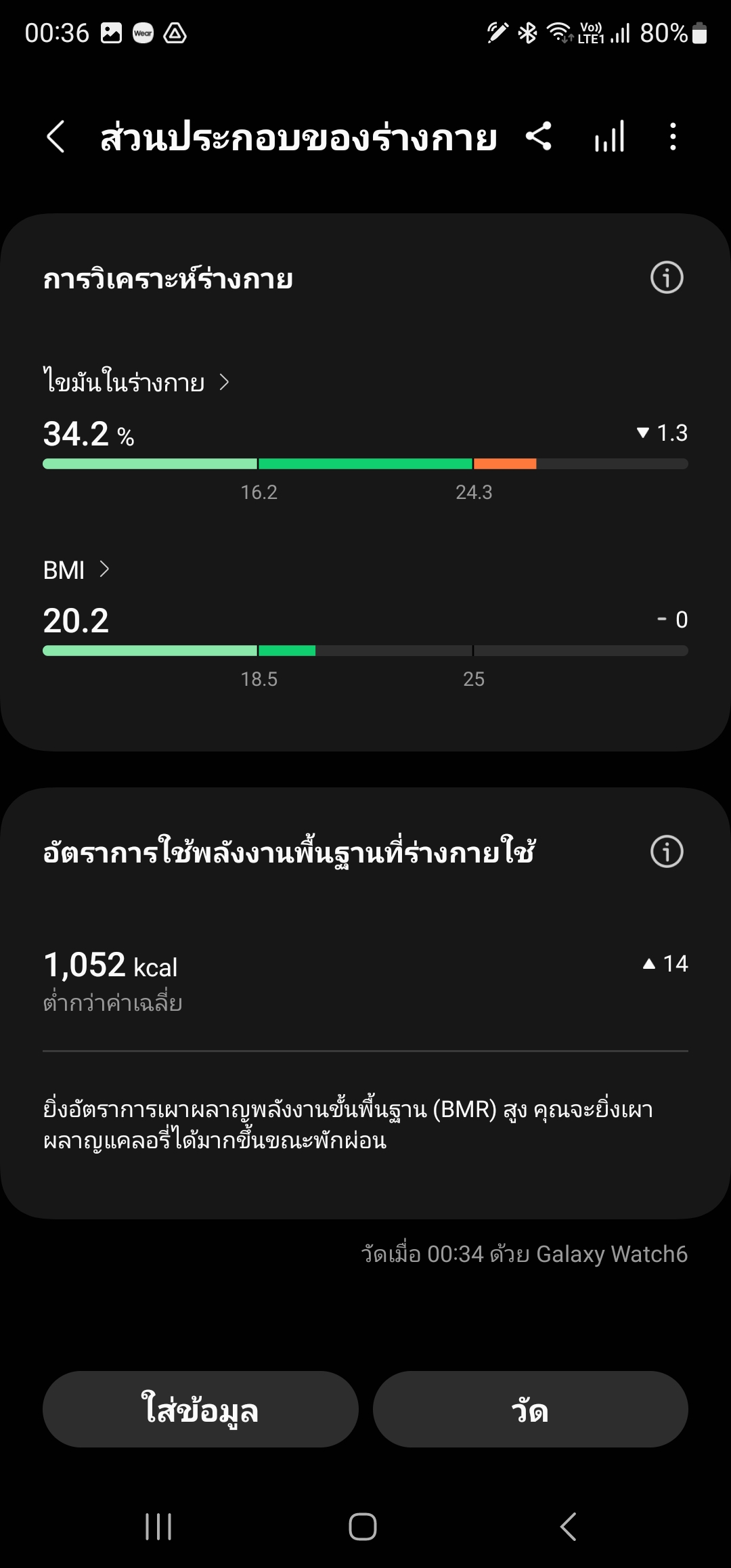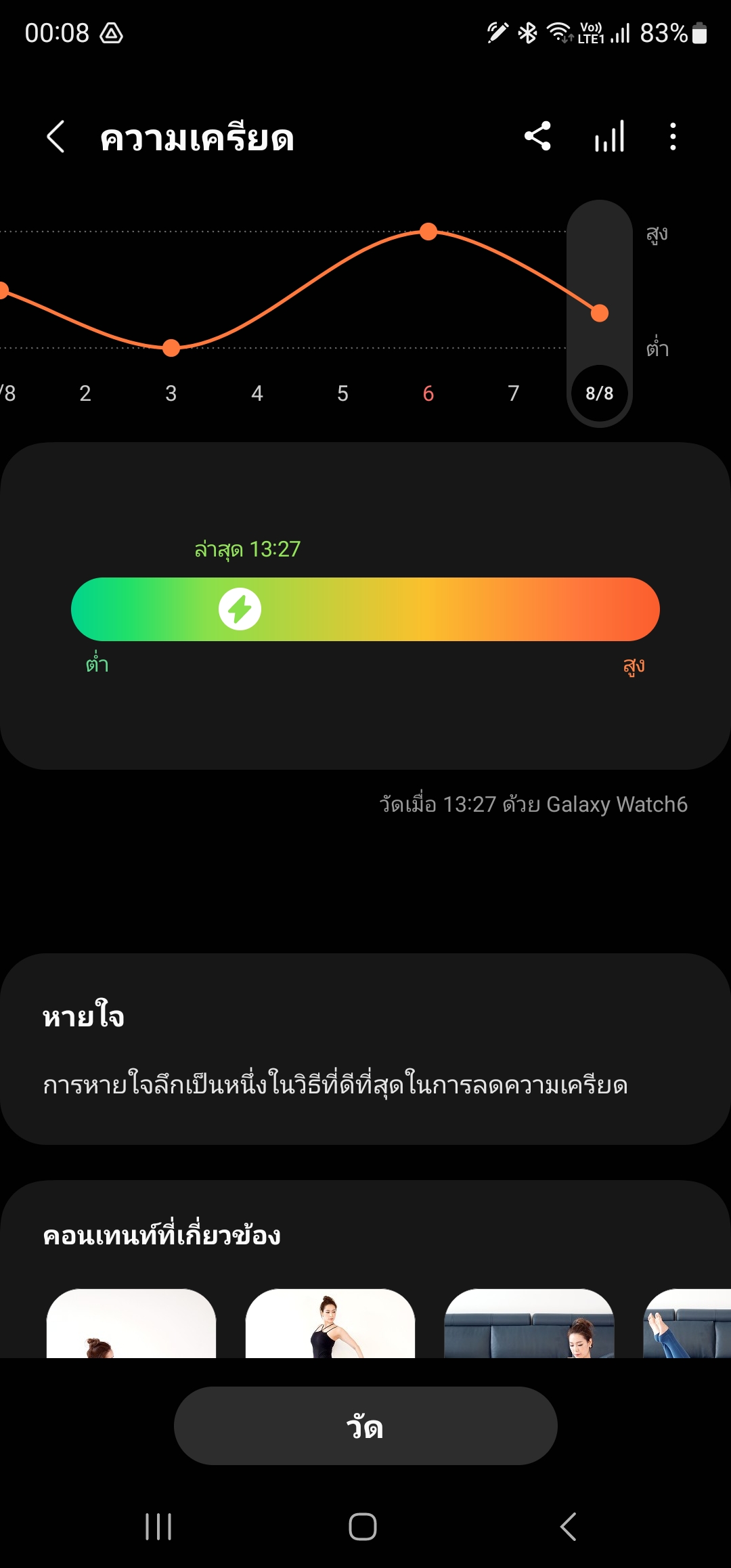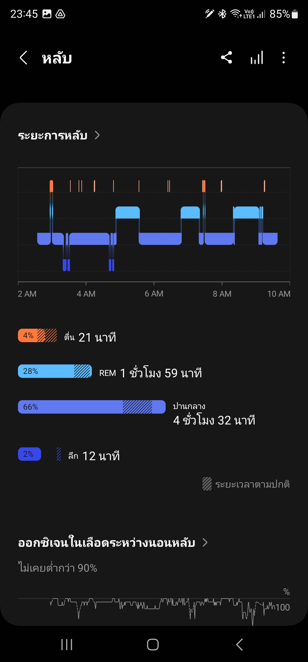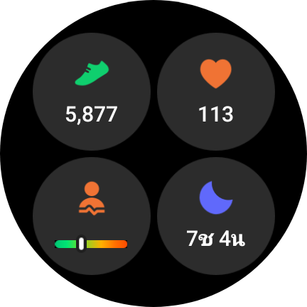 แต่ต้องบอกก่อนว่าข้อมูลในตัวนาฬิกาจะไม่ละเอียดเท่าบนมือถือนะคะ ยังไงก็ดีให้ Sync มาดูบนแอป Samsung Health จะได้ข้อมูลที่ครบถ้วนกว่าด้วย