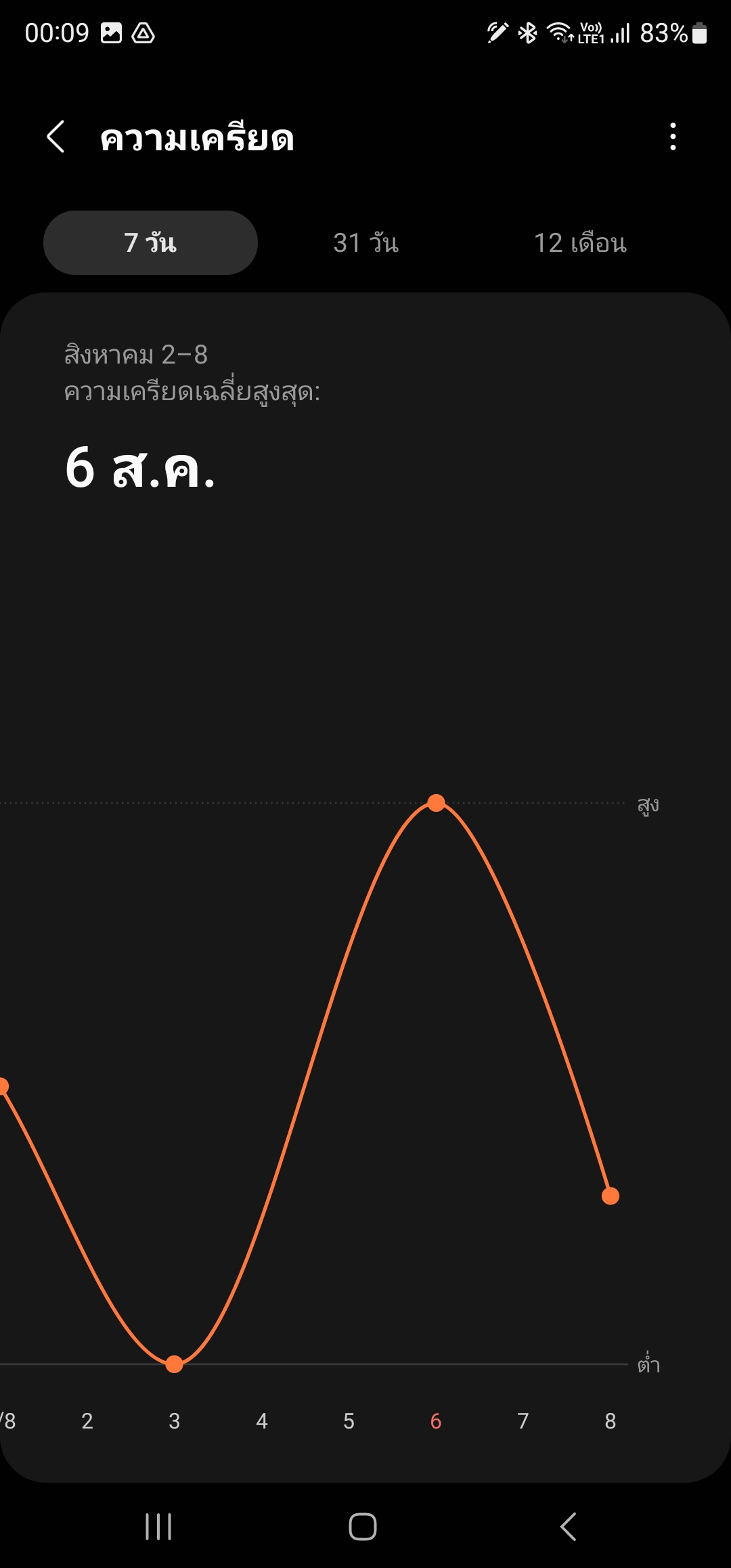 ตรวจจับความเครียด เป็นการดูว่าในแต่ละวันสถานะอารมณ์ของเราเป็นอย่างไร ความเครียดสูงมากน้อยแค่ไหน และถ้าสูงเกินไป ตัวแอปจะแนะนำให้เราหายใจลึก ๆ เพื่อลดความเครียด