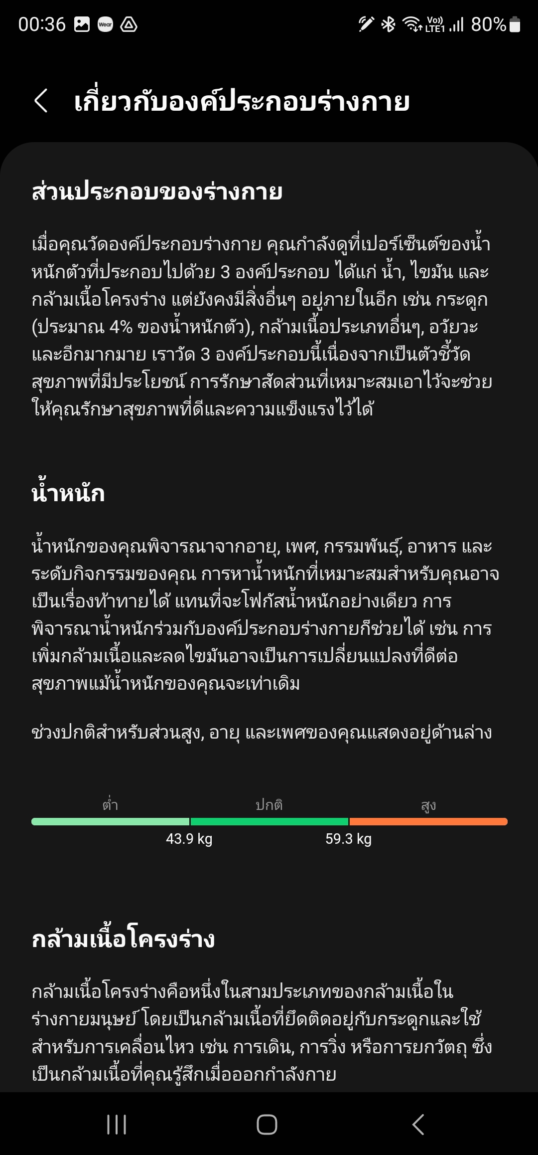 ตรวจวัดองค์ประกอบของร่างกาย เป็นการดูว่าค่าเฉลี่ยน้ำหนัก และไขมันในร่างกายสูงเกินไปหรือเปล่า เพื่อให้เราจัดการสมดุลสุขภาพ เพื่อฝึกความแข็งแรงของกล้ามเนื้อ รวมไปถึงการได้สารอาหารที่ดีนั่นเอง
