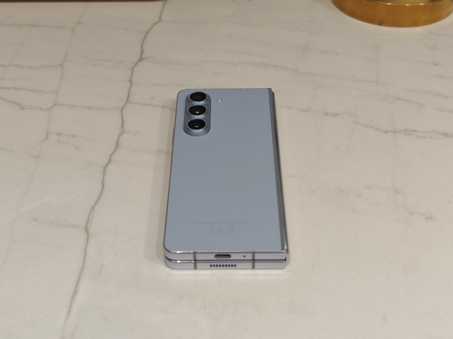 Galaxy Z Fold5 เปลี่ยนมาใช้บานพับแบบ Flex Hinge ทำให้หน้าจอสามารถพับหากันได้แบบแนบสนิทจนไม่มีช่องว่างเหมือนรุ่นที่ผ่านมา และยังทำให้ตัวเครื่องตอนพับจอมีความบางตามไปด้วย