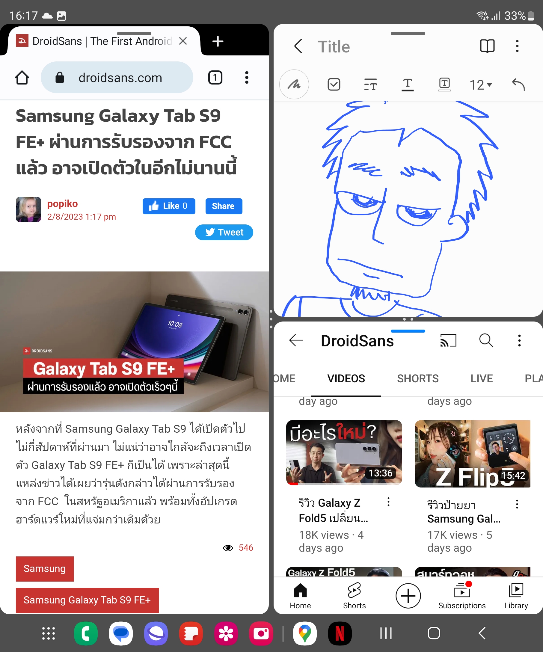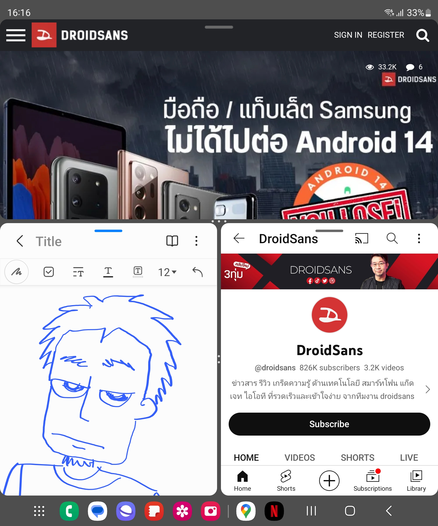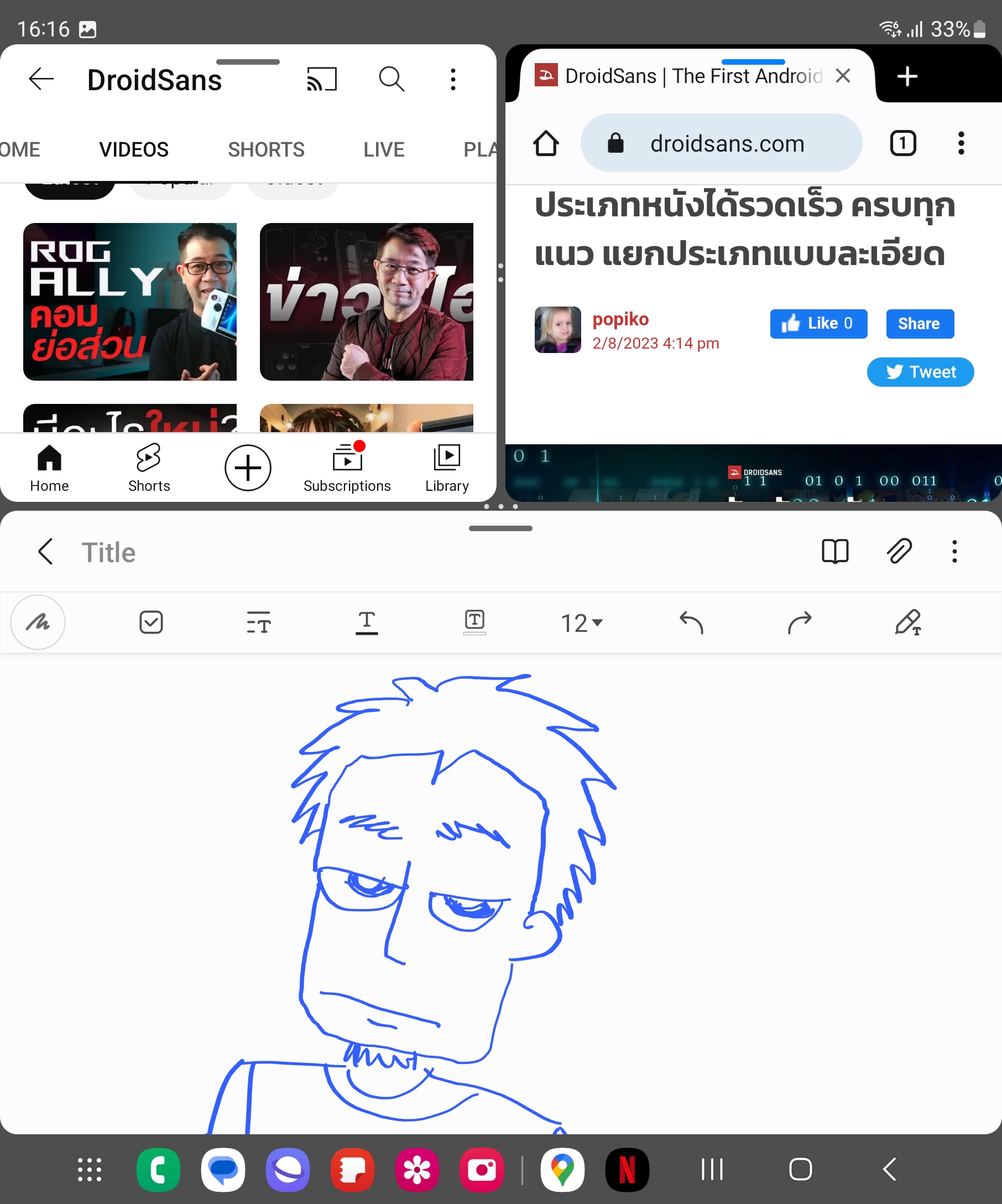 ถ้าใช้แนวนอนตอนพับจอ UI จะแปลก ๆ หน่อย