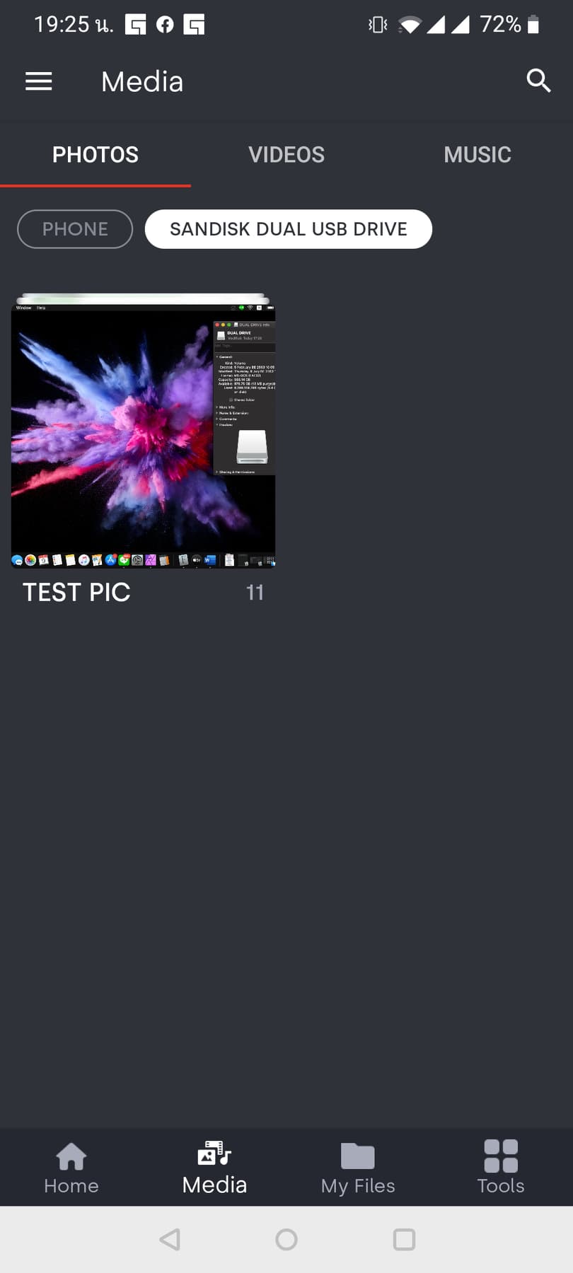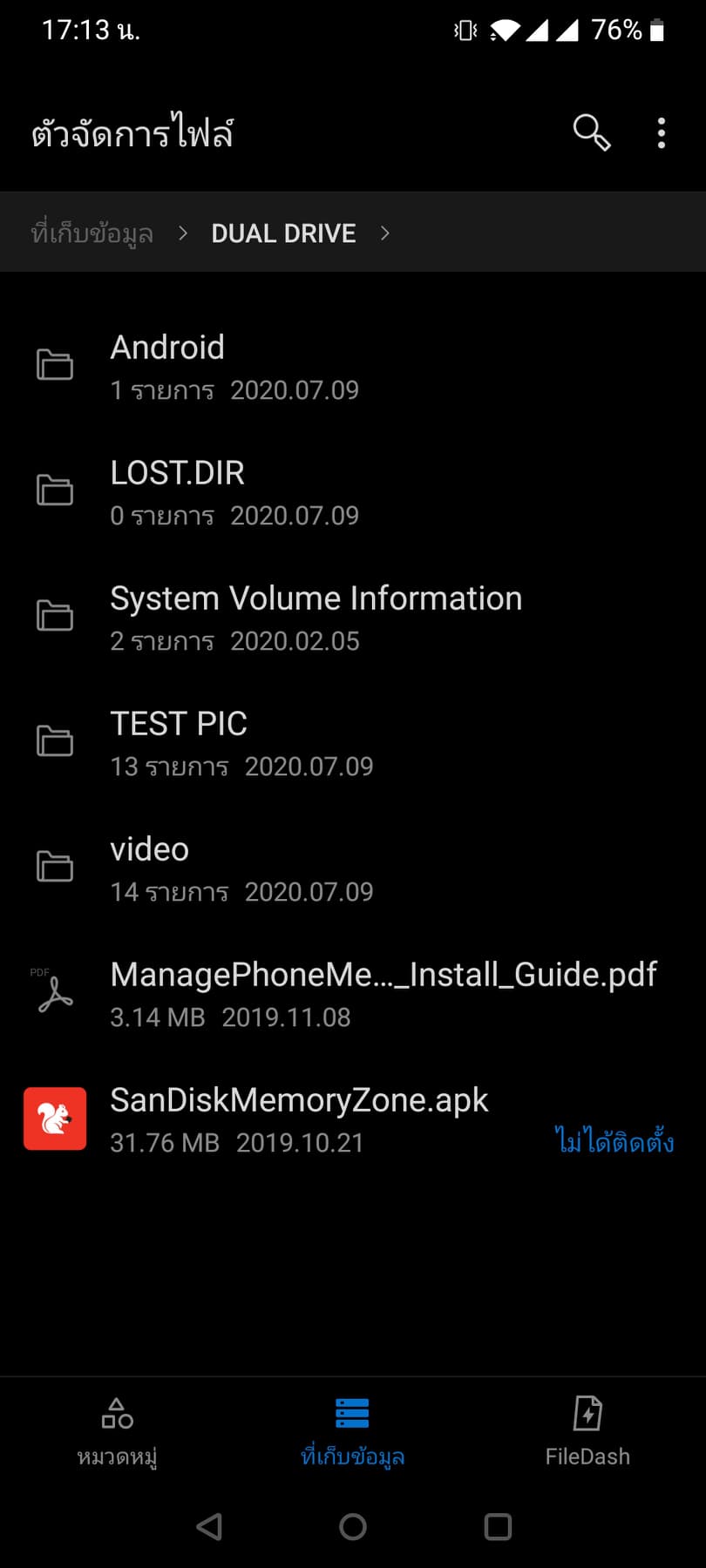 หลังจากที่ทดสอบบน PC ไปแล้วลองมาใช้งานบน มือถือกันบ้างผ่าน โดยมือถือที่ทีมงานใช้จะเป็นระบบ Android เชื่อมต่อผ่านแฟลชไดร์ฟด้วยพอร์ต Type C ซึ่งหลังจากเสียบใช้งานเสร็จ กดเข้า File Manager ก็จะพบไดร์ฟ Dual Drive เพิ่มเข้าขึ้นมาทันที