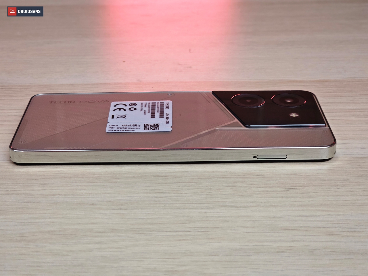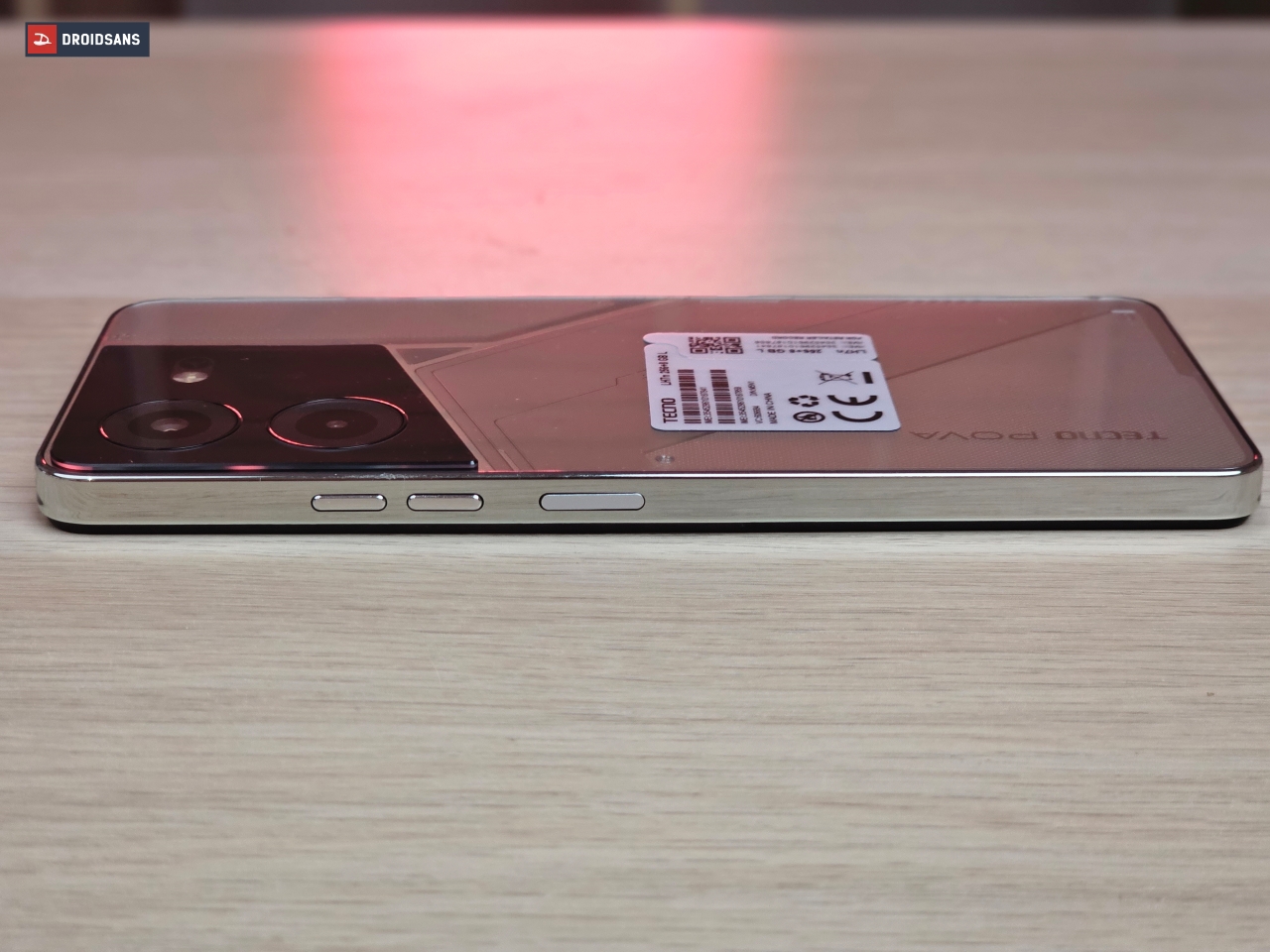 ในรุ่นนี้ถือเป็นการพลิกโฉมดีไซน์ของ TECNO ไปอีกขั้น โดยเฉพาะสีทอง Amber Gold (ตัวเครื่องจริงจะออกสีเงิน) ที่ฝาหลังมีสัมผัส และลวดลายเส้นต่าง ๆ ที่แตกต่างกัน เฟรมขอบตัวเครื่องใช้วัสดุพลาสติก เคลือบสีเงินเงางาม ดูล้ำยุคเหมือนใช้มือถือจากโลกอนาคต