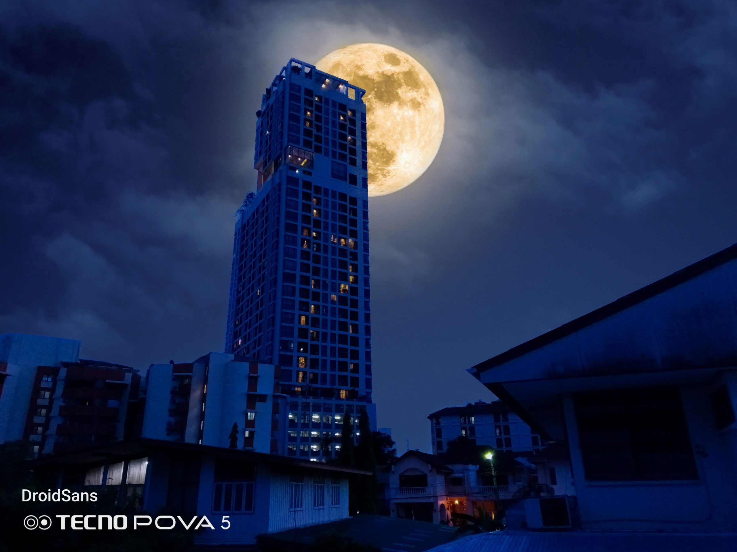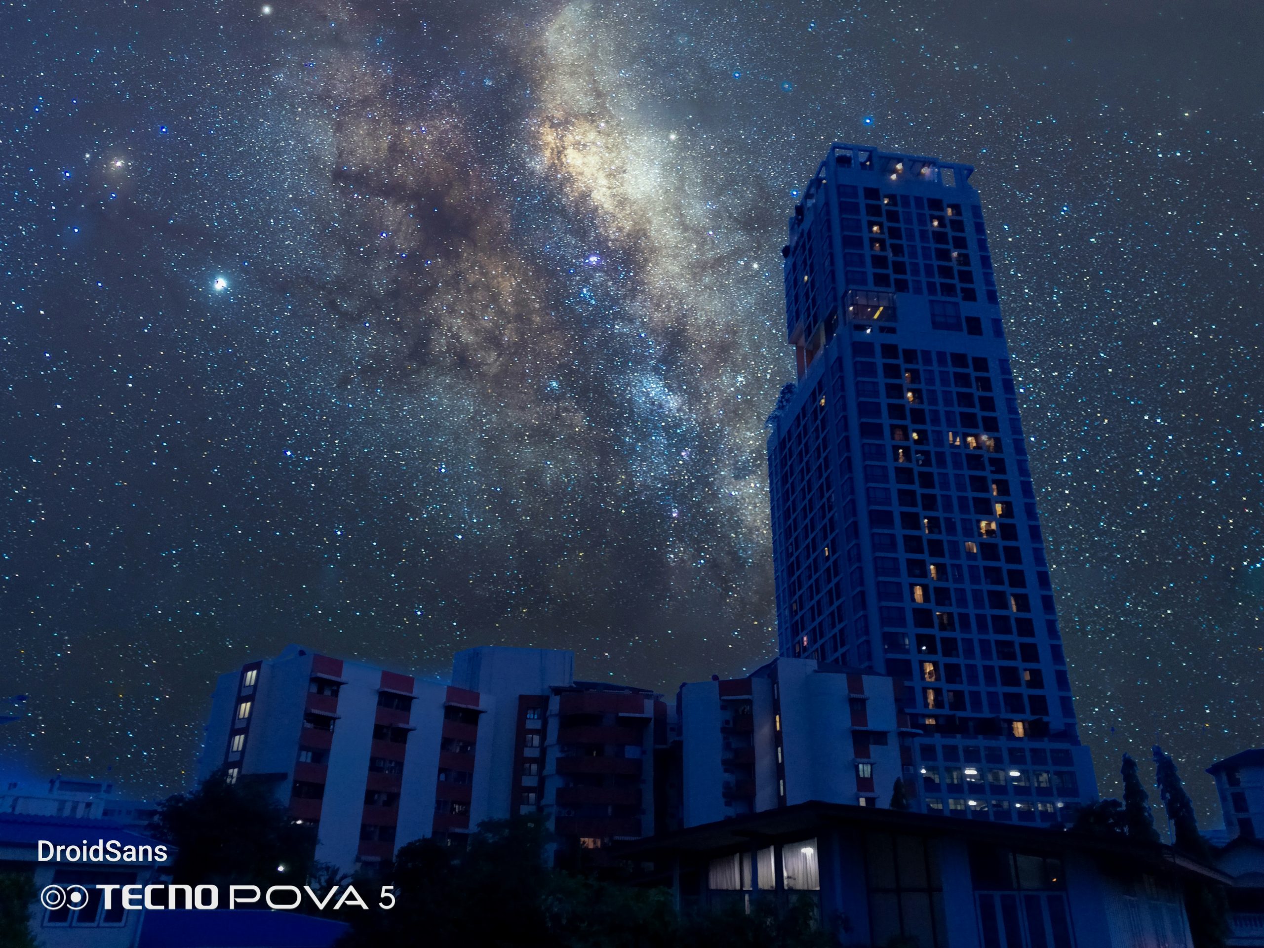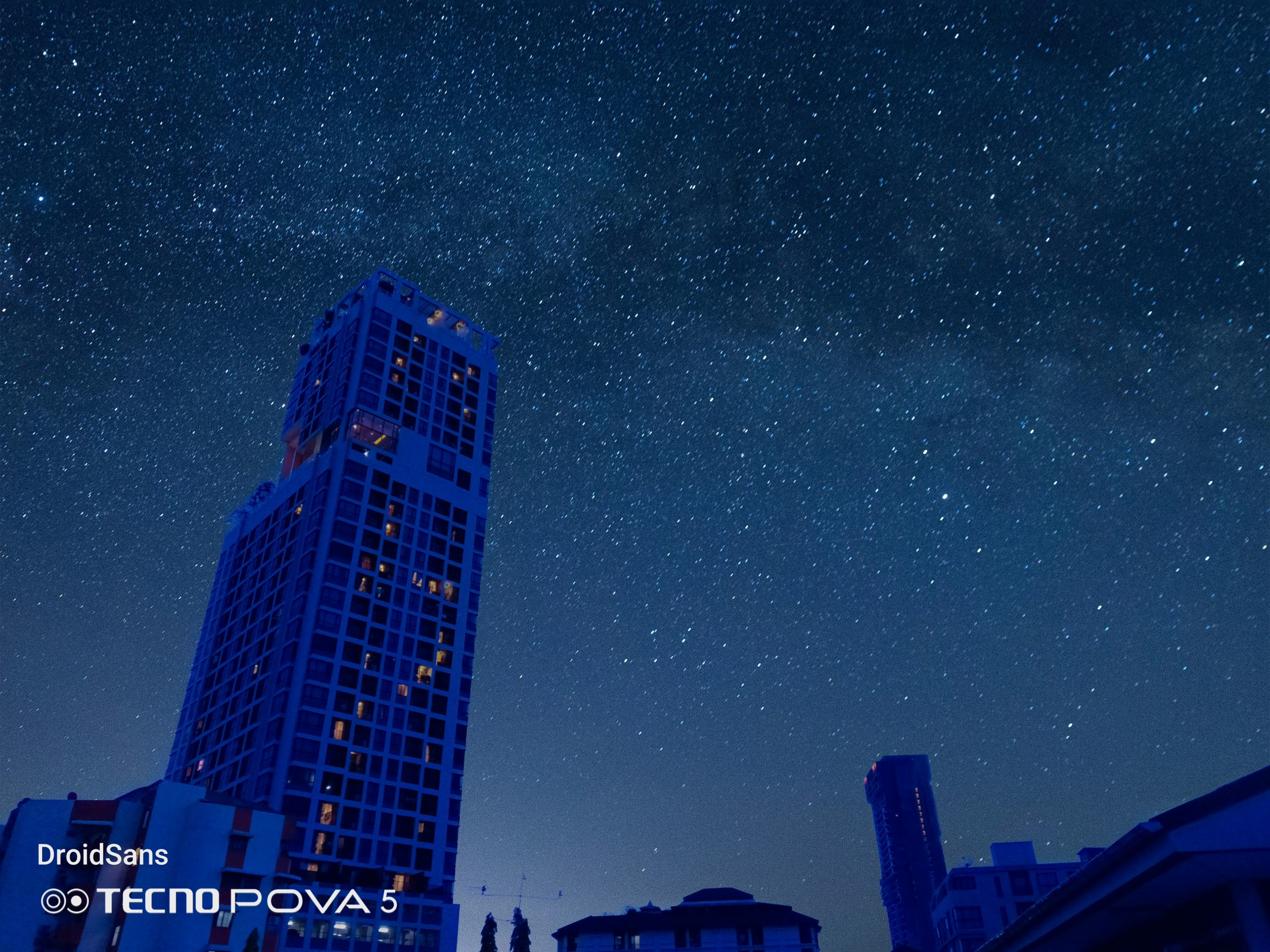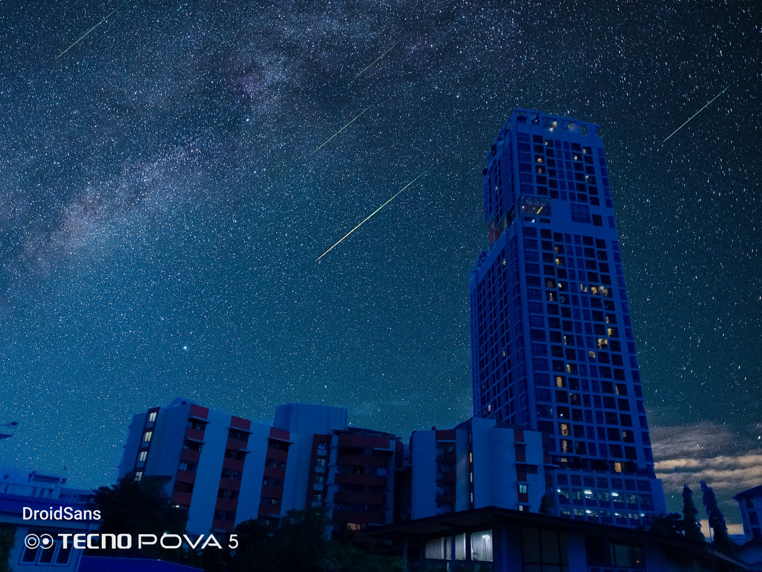 จุดขายอีกอย่างหนึ่งของกล้องหลังของ TECNO Pova 5 คือโหมด Sky Shop ที่สามารถถ่ายภาพท้องฟ้า หรือดาวต่าง ๆ ได้สวยขึ้นไปอีกระดับ โดยโหมดนี้จะมีฟิลเตอร์ท้องฟ้าสำเร็จรูป 12 แบบให้เราเลือก หลังจากนั้นก็จ่อกล้องไปที่ท้องฟ้า ระบบ AI ก็จะทำการตรวจจับพร้อมซ้อนภาพท้องฟ้าสำเร็จรูปเข้ากับรูปที่เราถ่ายเองแบบเนียน ๆ เหมือนมีก้อนเมฆ และดาวของจริงบนท้องฟ้าเลยทีเดียว