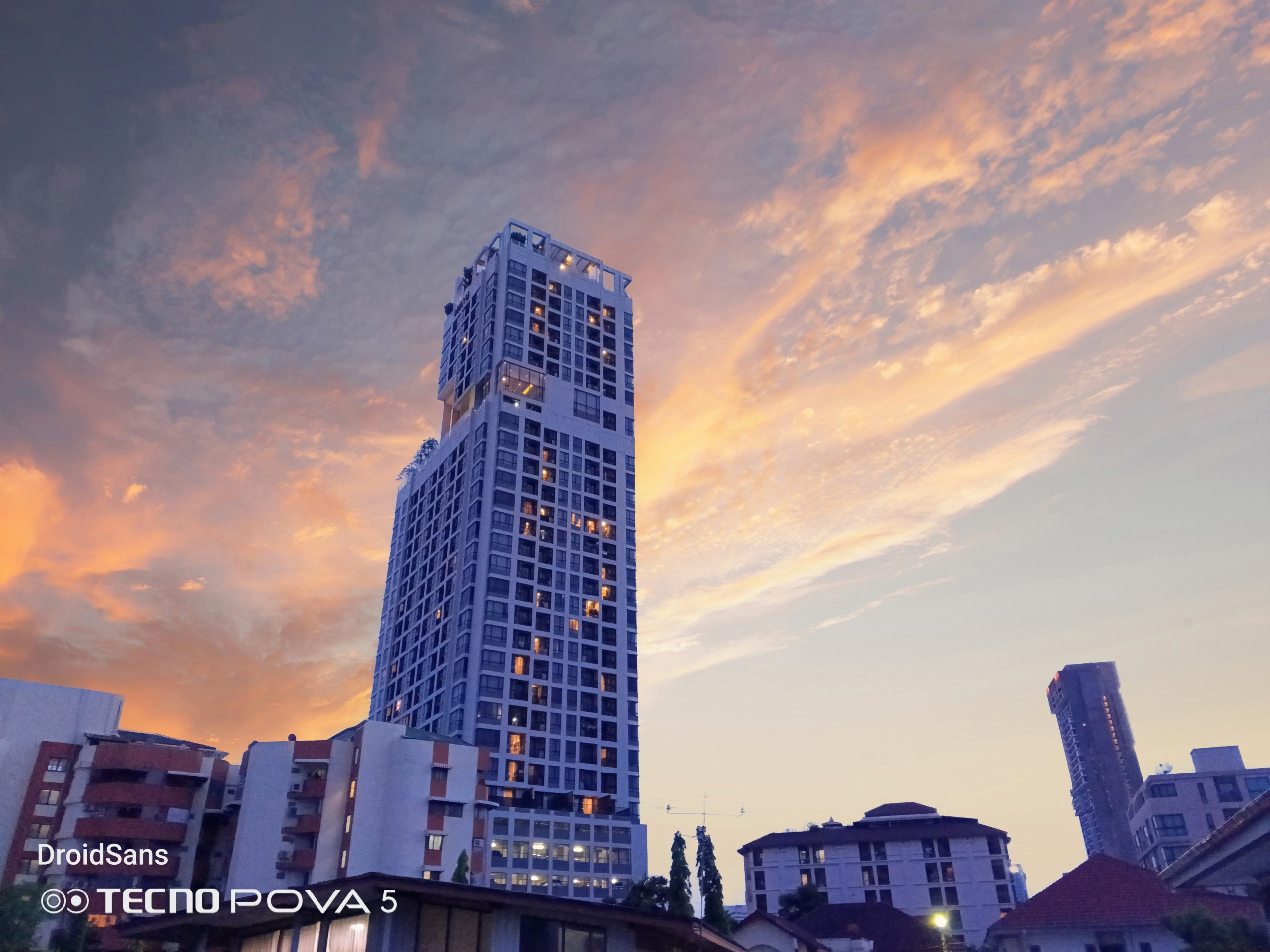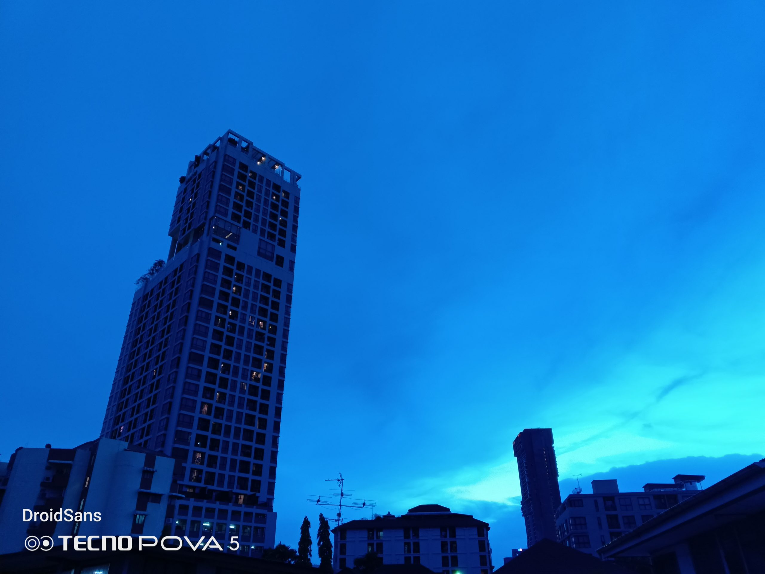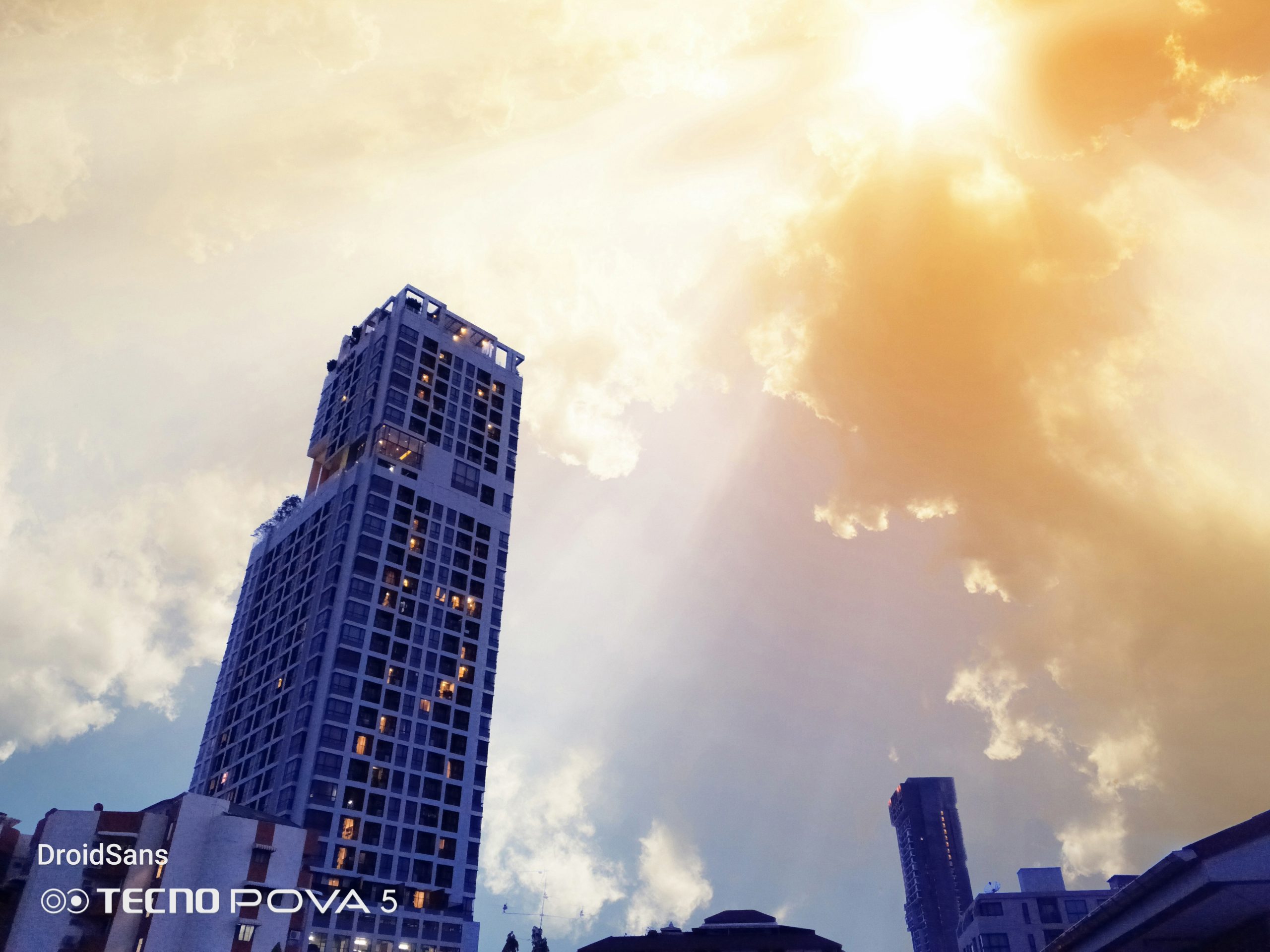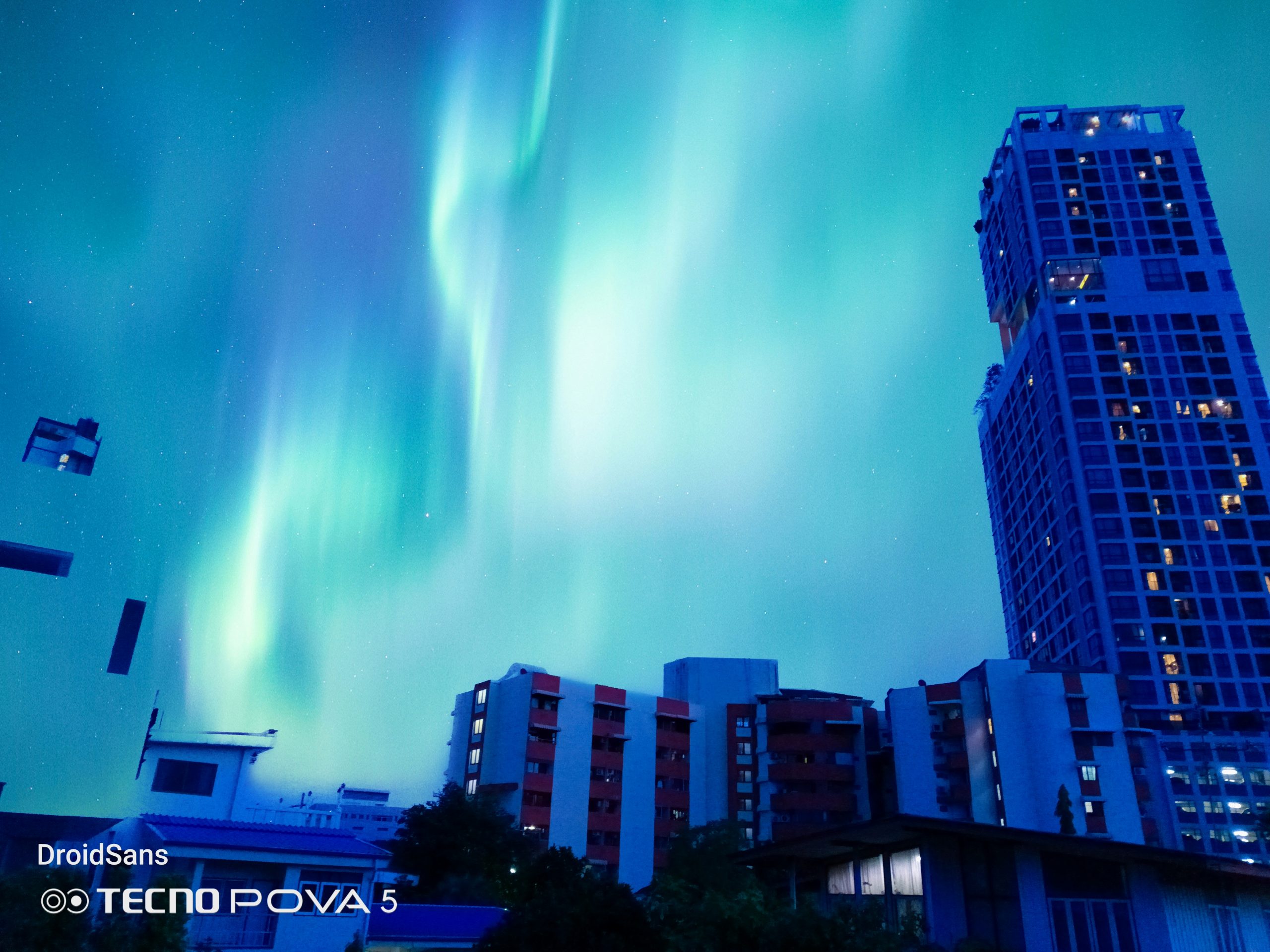จุดขายอีกอย่างหนึ่งของกล้องหลังของ TECNO Pova 5 คือโหมด Sky Shop ที่สามารถถ่ายภาพท้องฟ้า หรือดาวต่าง ๆ ได้สวยขึ้นไปอีกระดับ โดยโหมดนี้จะมีฟิลเตอร์ท้องฟ้าสำเร็จรูป 12 แบบให้เราเลือก หลังจากนั้นก็จ่อกล้องไปที่ท้องฟ้า ระบบ AI ก็จะทำการตรวจจับพร้อมซ้อนภาพท้องฟ้าสำเร็จรูปเข้ากับรูปที่เราถ่ายเองแบบเนียน ๆ เหมือนมีก้อนเมฆ และดาวของจริงบนท้องฟ้าเลยทีเดียว
