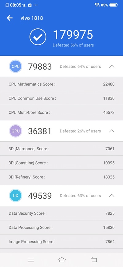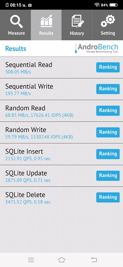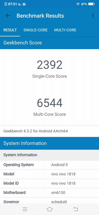 ผลการทดสอบ Antutu ได้ไป 179975 คะแนน ส่วนคะแนน Geekbench นั้นทำไป 2392 (Single-Core) และ 6544 (Multi-Core) ส่วนหน่วยความจำที่ทดสอบผ่าน Androbench ก็มีความเร็วในการอ่าน 308 MB/s และเขียน 195 MB/s