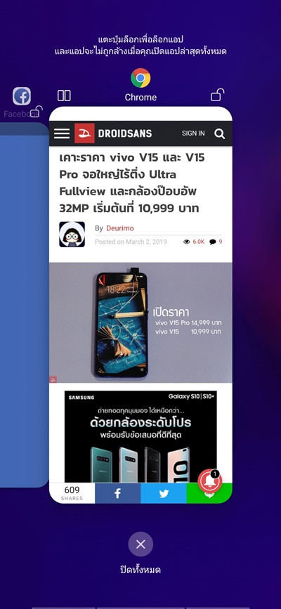 ซึ่งหากเรามีการเปลี่ยนจาก 3 ปุ่มไปใช้เป็น gesture แล้ว รูดขอบจอล่างซ้ายจะเป็นการเรียก Quick Setting, รูดตรงกลางจะเป็นการกลับหน้า Home และทางขวาจะเป็นปุ่มย้อนกลับหรือ Back ส่วนจะเปิดแอปล่าสุดนั้นต้องรูดตรงกลางแล้วค้างนิ้วไว้บนหน้าจอ