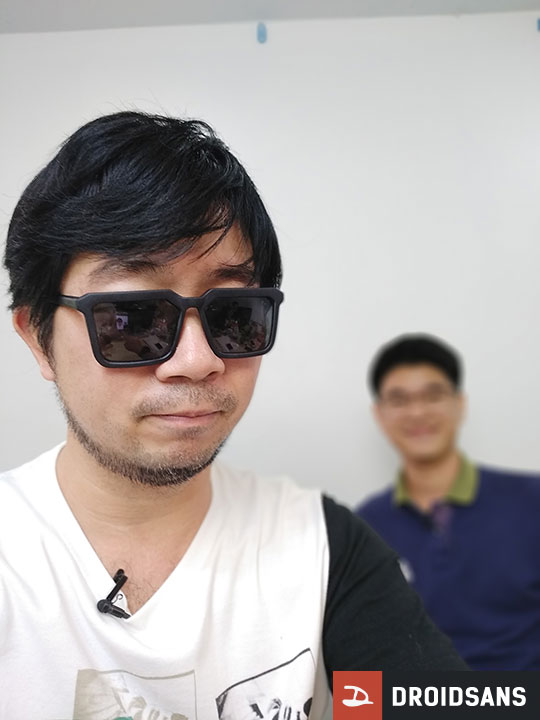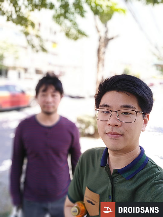 หน้าตาการใช้งานตอนสลับมากล้องหน้านั้นเหมือนกับตอนเป็นกล้องหลัง แต่มีจุดต่างตรงที่เราสามารถเลือกใช้งาน โหมด Bokeh ได้ โดยเมื่อเราเลือกโหมด Bokeh แล้ว เราสามารถที่จะกดที่หน้าจอเพื่อเลือกจุดโฟกัส พร้อมกับปรับค่า F เพื่อที่จะให้ภาพนั้นเบลอมาก เบลอน้อย ได้ตามใจชอบ