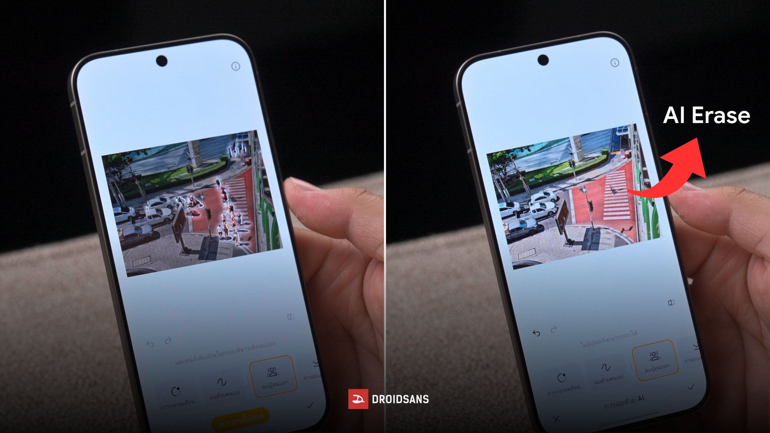 - AI Erase : ลบสิ่งของหรือบุคคลในรูปภาพที่ไม่ต้องการออกไปได้ง่าย ๆ เพียงปลายนิ้ว