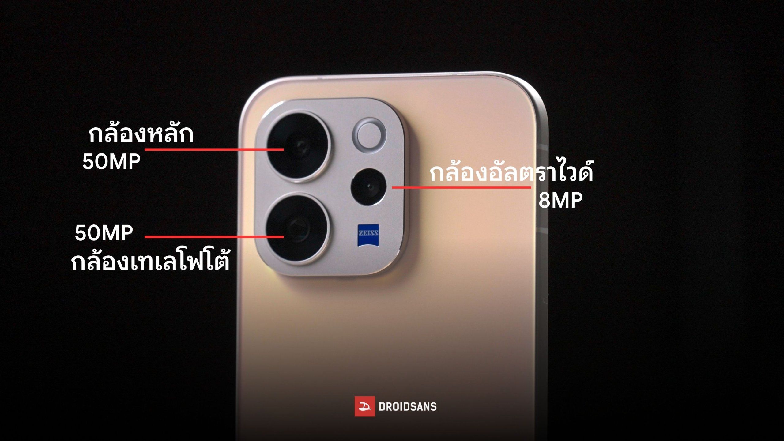 - กล้องหลัก 50MP ZEISS OIS Main Camera (f/1.88) เซนเซอร์ Sony IMX766 ขนาด 1/1.56 นิ้ว