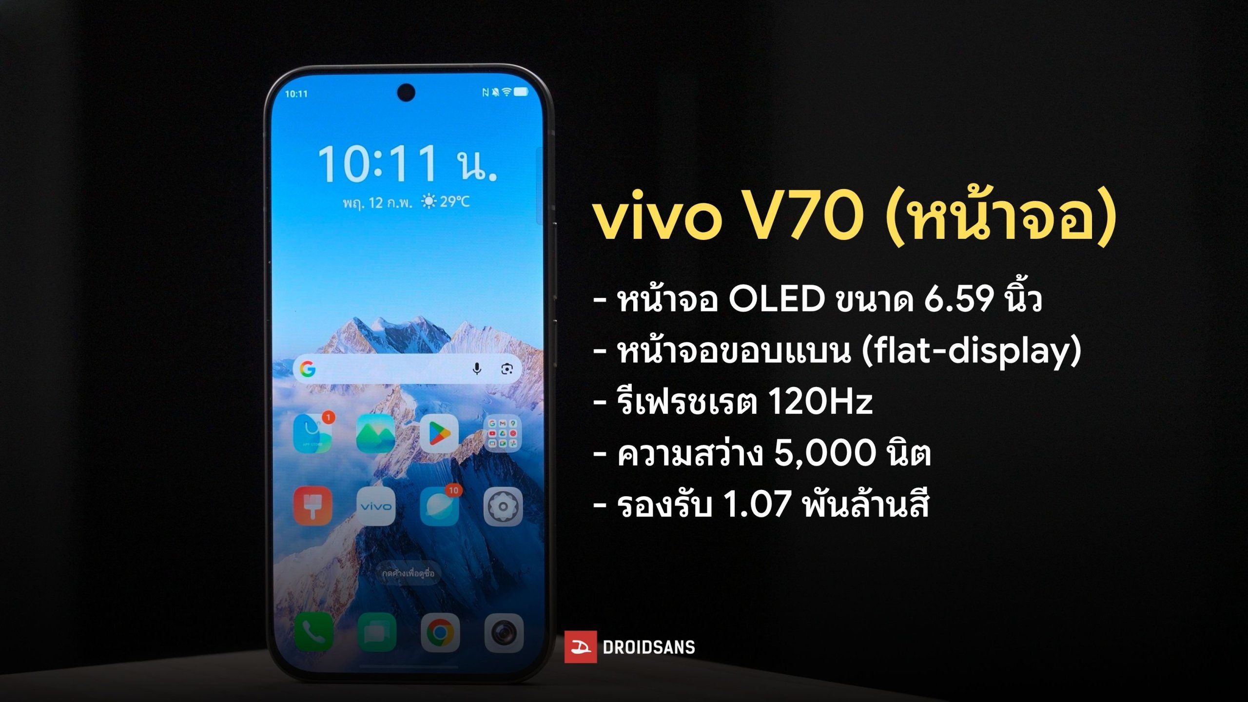 DroidSans เสิร์ฟรีวิว vivo V70 รุ่นใหม่ล่าสุด กับ 7 จุดเด่นน่าสนใจของมือถือกล้องสวยเลนส์ ZEISS ใช้งานจริงถ่ายภาพสวยแค่ไหน ปรับดีไซน์เป็นหน้าจอขอบแบน (flat-display) แล้วจับถือดีขึ้นมั้ย แบตเตอรี่และระบบปฏิบัติการ Android 16 เป็นยังไง มาดูไปพร้อมกันเลย !