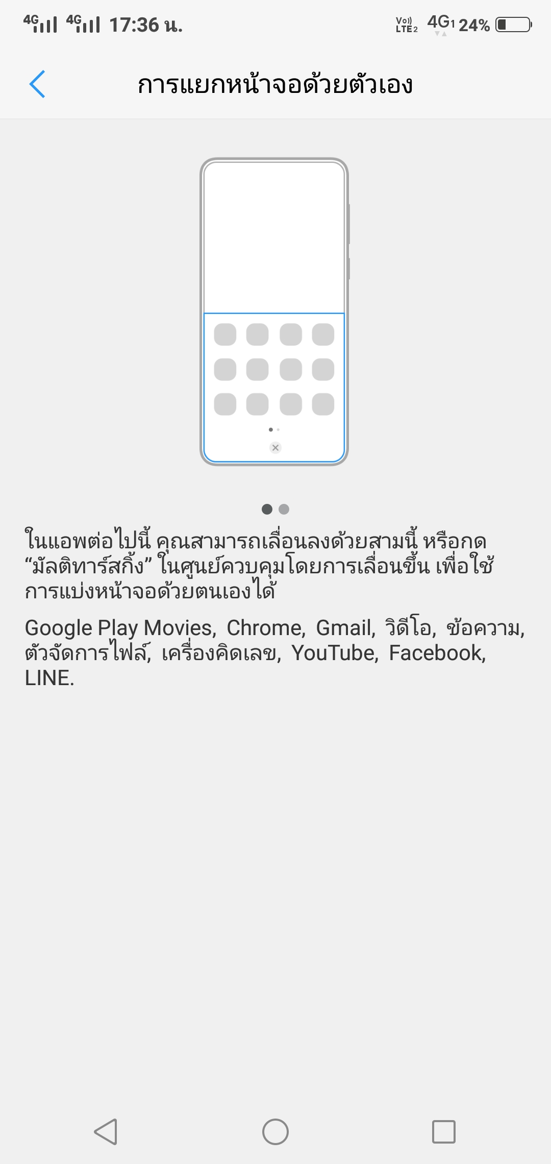ระบบแบ่งหน้าจอหรือ Multi Windows ของ vivo นั้นมีวิธีเรียกง่ายๆ คือการลากสามนิ้วบนหน้าจอแอป หากแอปไหนแบ่งได้ก็จะมีการแหวกหน้าจออีกซึกนึงขึ้นมาเพื่อให้ให้เปิดแอปที่สอง