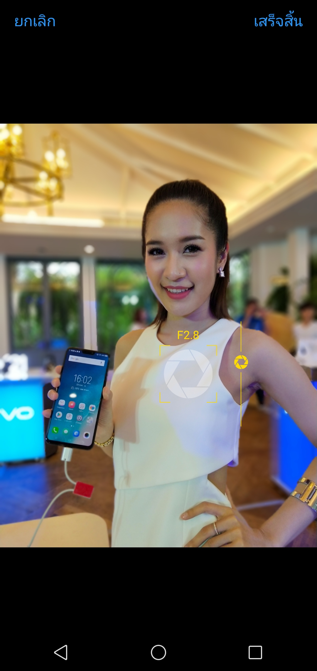 กล้องหน้า 12 ล้านพิกเซลเองก็สามารถอัพไปเป็น 24 ล้านพิกเซลได้ และมีฟีเจอร์ต่างๆ ไม่แพ้กล้องหลัง ที่สำคัญมี AI Face Beauty เหมือน V9 ลองถ่ายออกมาแล้วก็จะประมาณนี้