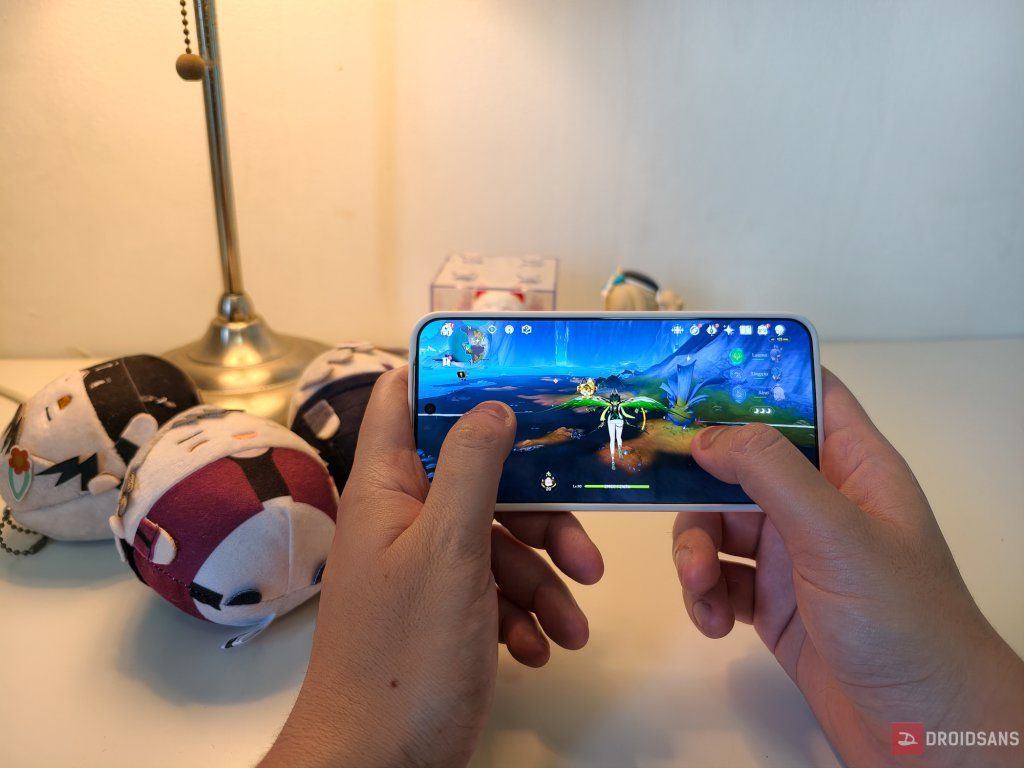 สำหรับเกมจากค่าย HoYoverse ทั้ง Genshin Impact และ Zenless Zone Zero (ZZZ) ถือว่าทำได้ดีมาก เริ่มจาก Genshin ซึ่งสามารถตั้งกราฟิกสูงสุดพร้อมเฟรมเรต 60fps แล้วเล่นได้ลื่นไหลสบาย ๆ มีเพียงอาการโหลดภาพไม่ทันบ้างตอนหมุนกล้องเร็ว ๆ กับกระตุกเล็กน้อยตอนโหลดฉาก ซึ่งเป็นสิ่งที่พบได้แม้ในมือถือสเปกสูงหลายรุ่น แต่ที่น่าประทับใจคือเฟรมเรตแทบไม่ตกต่ำกว่า 40-50fps เลย และที่สำคัญไม่มีอาการดรอปเพราะความร้อน ตัวเครื่องควบคุมอุณหภูมิได้ดีมากในเกมนี้