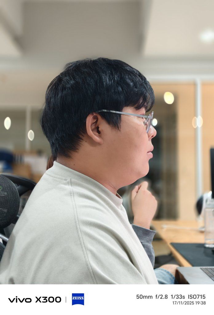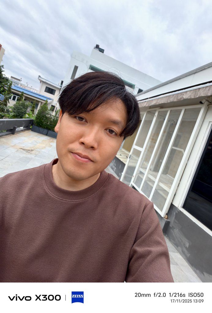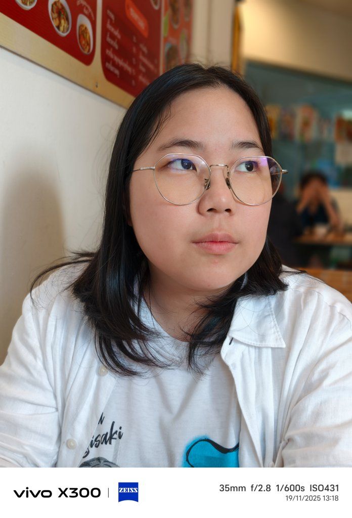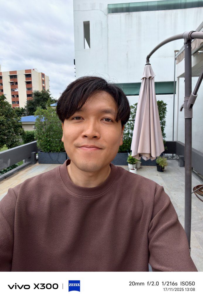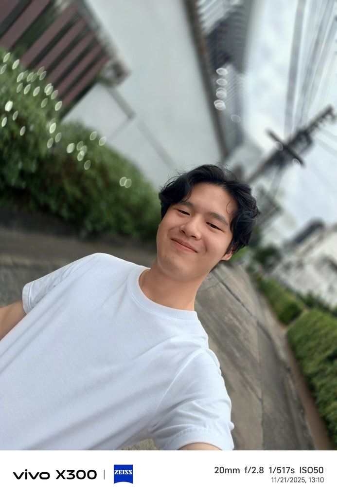 ความต่างของภาพจากรุ่นนี้กับ X300 Pro จับได้ไม่ยาก รุ่น Pro จะเน้นความธรรมชาติมากกว่า รายละเอียดบนผิว โดยเฉพาะ texture และริ้วรอยยังคงอยู่ครบ ไม่ถูกลบออกจนหน้าเนียน คอนทราสต์ของภาพก็จะไปในโทนจริงจังขึ้นเล็กน้อย มีความหม่นกว่าแต่ให้มิติภาพที่สมจริงกว่า ขณะที่ X300 จะเน้นโทนสดใส รายละเอียดบางส่วนถูกเกลี่ยให้เรียบจนดูกลมกล่อมกว่า เหมาะกับคนที่ต้องการความง่ายมากกว่าเน้นความตรงไปตรงมาของภาพจริง