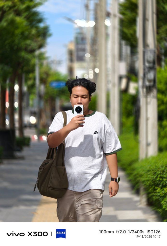 ภาพบุคคลของรุ่นนี้ทำได้ดีตามสไตล์ vivo การตัดขอบแม่น โบเก้เนียน และสกินโทนสวยกำลังดี เพียงแต่ AI ของระบบยังคงช่วยอยู่ราว ๆ ยี่สิบเปอร์เซ็นต์ในแทบทุกภาพ ไม่ว่าจะปิดโหมดปรับผิวแล้วก็ตาม ผิวจึงดูเรียบขึ้นเป็นธรรมชาติแบบ vivo มากกว่าจะเป็นงานภาพดิบเหมือนรุ่น Pro ซึ่งจะเก็บรายละเอียดผิวได้จริงกว่าและไม่ลบรอยใด ๆ ทิ้งไป