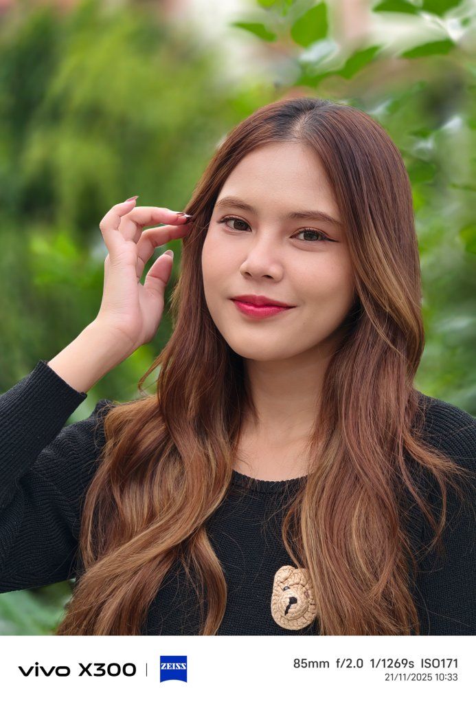 ภาพนิ่งของ vivo X300 แม้จะเป็นรุ่นเล็กแต่ยังคงความง่ายในการถ่ายเหมือนเดิม หยิบขึ้นมากดก็ได้ภาพที่ดูดีแบบแทบไม่ต้องแต่งเพิ่ม จุดที่เห็นได้ชัดที่สุดคือแนวทางการประมวลผลที่เน้นความเนียนและความสวยสำเร็จรูป รายละเอียดผิวถูกเกลี่ยให้เรียบ สกินโทนถูกปรับให้ดูสว่างขึ้น และริ้วรอยเล็ก ๆ บนใบหน้าถูกลดลงไปพอสมควรจนให้ฟีลที่คล้ายเหมือนเปิดโหมดบิวตี้แบบอ่อน ๆ แม้จะไม่ได้เปิดจริงก็ตาม ทำให้บางภาพอาจรู้สึกปลอมเล็กน้อยเมื่อดูใกล้ ๆ แต่ในการใช้งานทั่วไปภาพลักษณะนี้กลับถูกใจหลายคนเพราะพร้อมลงโซเชียลทันทีโดยไม่ต้องมานั่งปรับแก้ทีหลัง