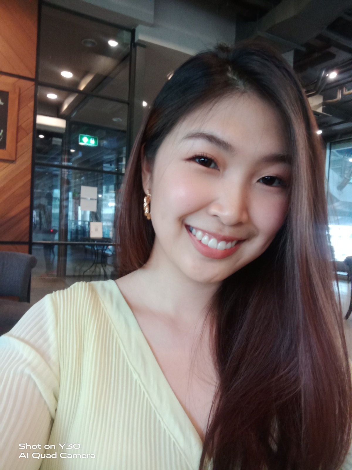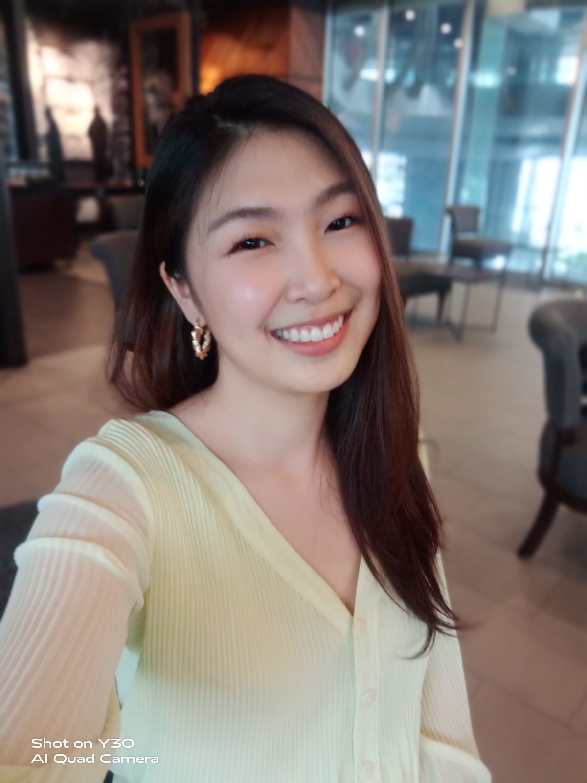 กล้องหน้าของ Y30 แม้ว่าจะเป็นรุ่นเล็ก ความละเอียด 8 ล้านพิกเซล แต่ถ้าแสงดีๆ ก็ถ่ายได้เนียนๆ และตัวเซนเซอร์สแกนลายนิ้วมือก็ยังสามารถใช้เป็นชัตเตอร์กล้องได้ด้วย