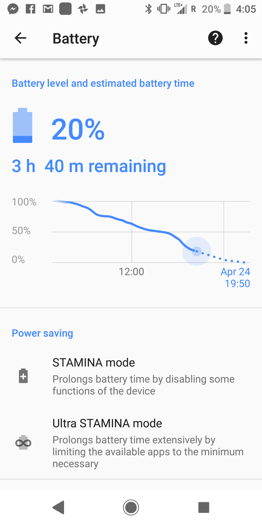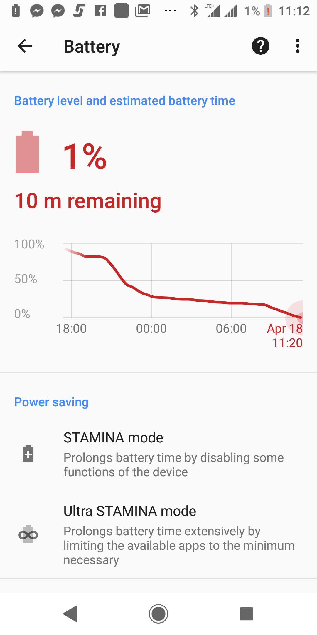 Xperia XZ2 เป็นตัวที่สื่อนอกหลายๆเจ้ายกให้ว่าเป็นตัวที่แบตอึดมาก แม้ว่าจะมีความจุน้อยกว่าคนอื่นก็ตาม ซึ่งจากการใช้งานด้วยตัวเองก็พบว่ามันอึดดีนะ แต่ไม่ถึงกับสุดยอดเล่นได้ข้ามวันข้ามคืน ยังต้องชาร์จแบตวันต่อวันอยู่ ใช้งานทั่วไปความยาวนานสูสีกับ Huawei P20 Pro คือวันนึงสบายๆไม่ต้องลุ้น แต่ถ้าจะให้ถึงสองวันก็ต้องใช้น้อยๆหน่อย ซึ่งการประหยัดแบตนี้ได้อานิสงค์มาจาก Hardware ที่กินพลังงานน้อย ทั้ง CPU GPU หน้าจอที่ประหยัดพลังงาน และตัว Software ที่ Android OS มันเองที่ทำมาให้ประหยัดพลังงานขึ้นเยอะ มีการปรับเข้าสู่โหมดจำศีล เมื่อไม่ได้ใช้งานนานๆ ก็แทบจะไม่กินแบตเลย แต่ฟีเจอร์ก็มีข้อเสียตามมานิดนึงที่เมื่อเข้าสู่โหมดจำศีลเมื่อไหร่ ข้อความใหม่ๆเข้าก็จะไม่มีแจ้งเตือนเข้ามาด้วย เมื่อไหร่ที่ยกเครื่องขึ้นมาถึงจะเห็นว่ามีข้อความยิงเข้ามารัวๆเลยล่ะ