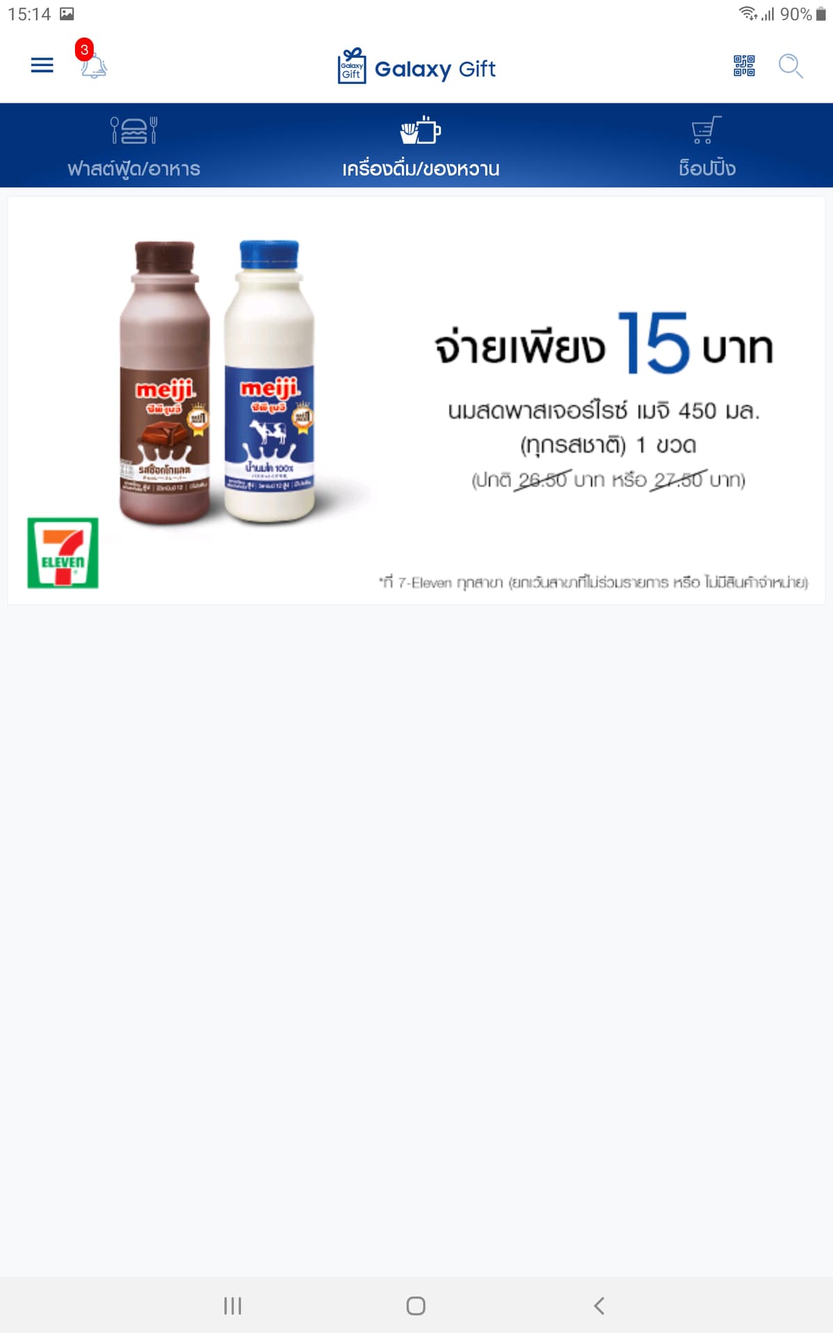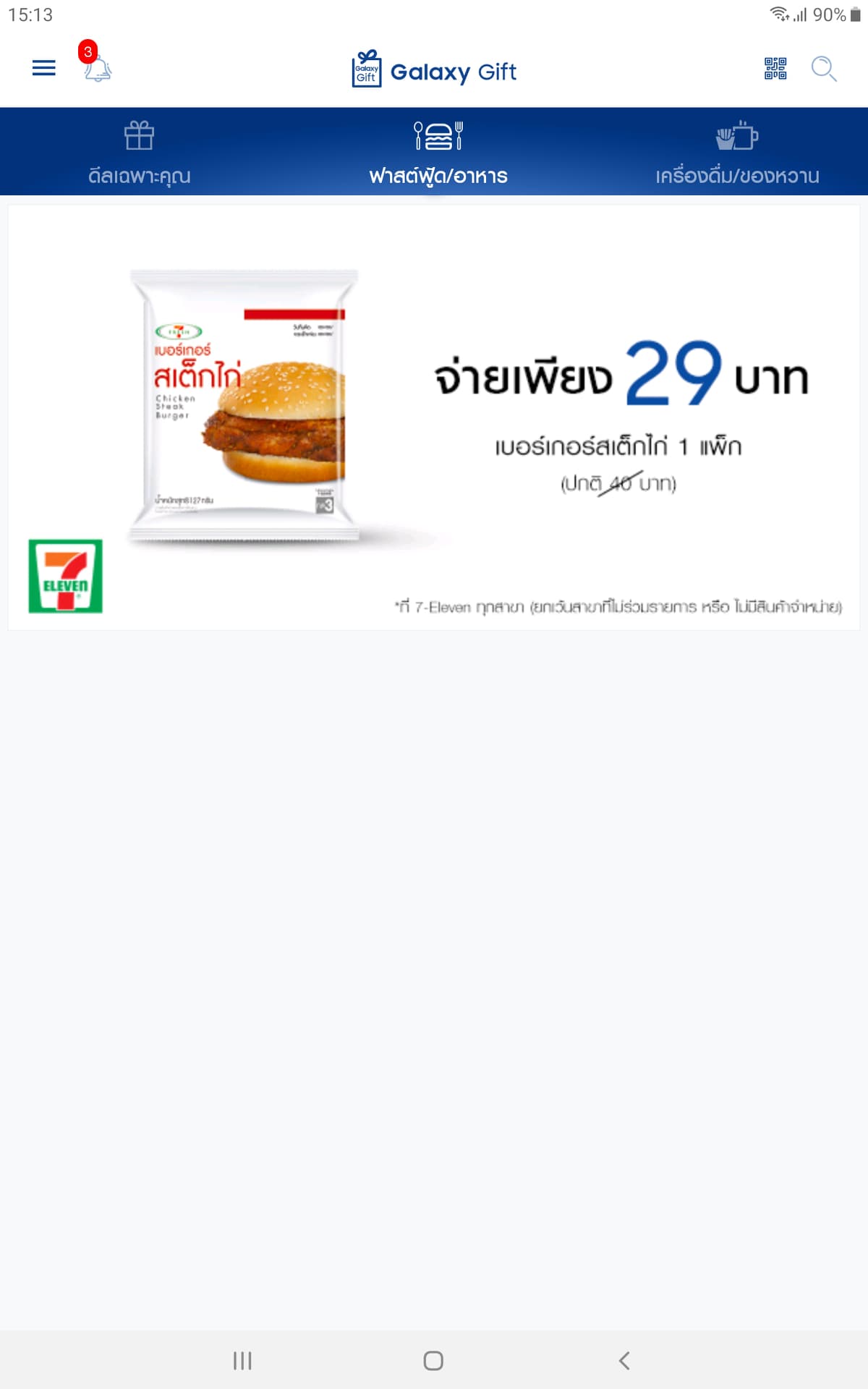 โดยตอนนี้ภายในแอป Galaxy Gift ก็เหลือเพียงแค่ส่วนลดของทางเซเว่นฯ อย่างเดียวเท่านั้น