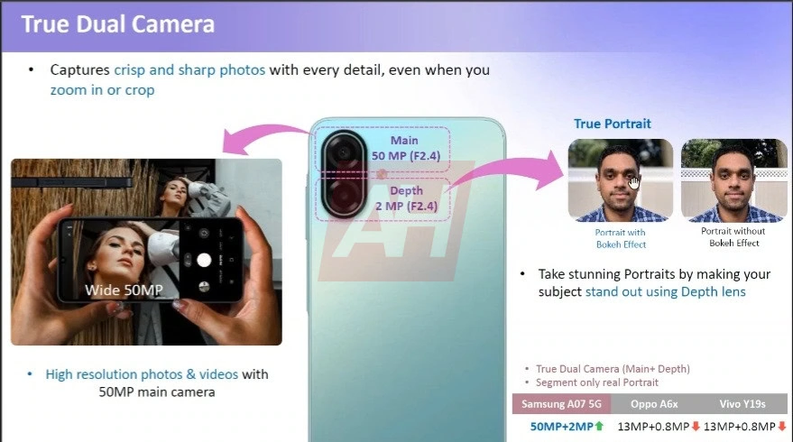กล้องหลัก 50MP จับคู่กับกล้องวัดตื้น-ลึก (Depth) ความละเอียด 2MP กล้องหน้าอัปเกรดขึ้นมาเป็นความละเอียด 8MP