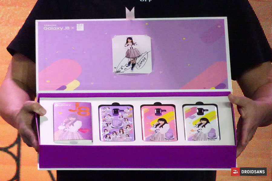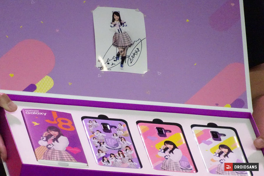 เปิดตัวอย่างเป็นทางการแล้วกับ Samsung Galaxy J8 ที่มาพร้อมพรีเซนเตอร์สุดน่ารักอย่างสาวๆ BNK48 เอาใจเหล่าโอตะอย่างเต็มที่กับ Boxset ที่มีเคสแถมลายน้องๆมาให้ถึง 3 ชิ้น รวมถึงโฟโต้การ์ด ซึ่งในแต่ละกล่องจะให้มาไม่ซื้อแบบกัน ถ้าเปิดมาแล้วไม่ตรงกับคนที่โอชิเอาไว้ก็สามารถเอาไปแลกกับคนอื่น หรือซื้อกล่องใหม่กันได้ นอกจากนี้ยังมีแอปสำหรับเปลี่ยนลาย Wallpaper ได้ด้วย รายละเอียดเต็มๆตามนี้นะ