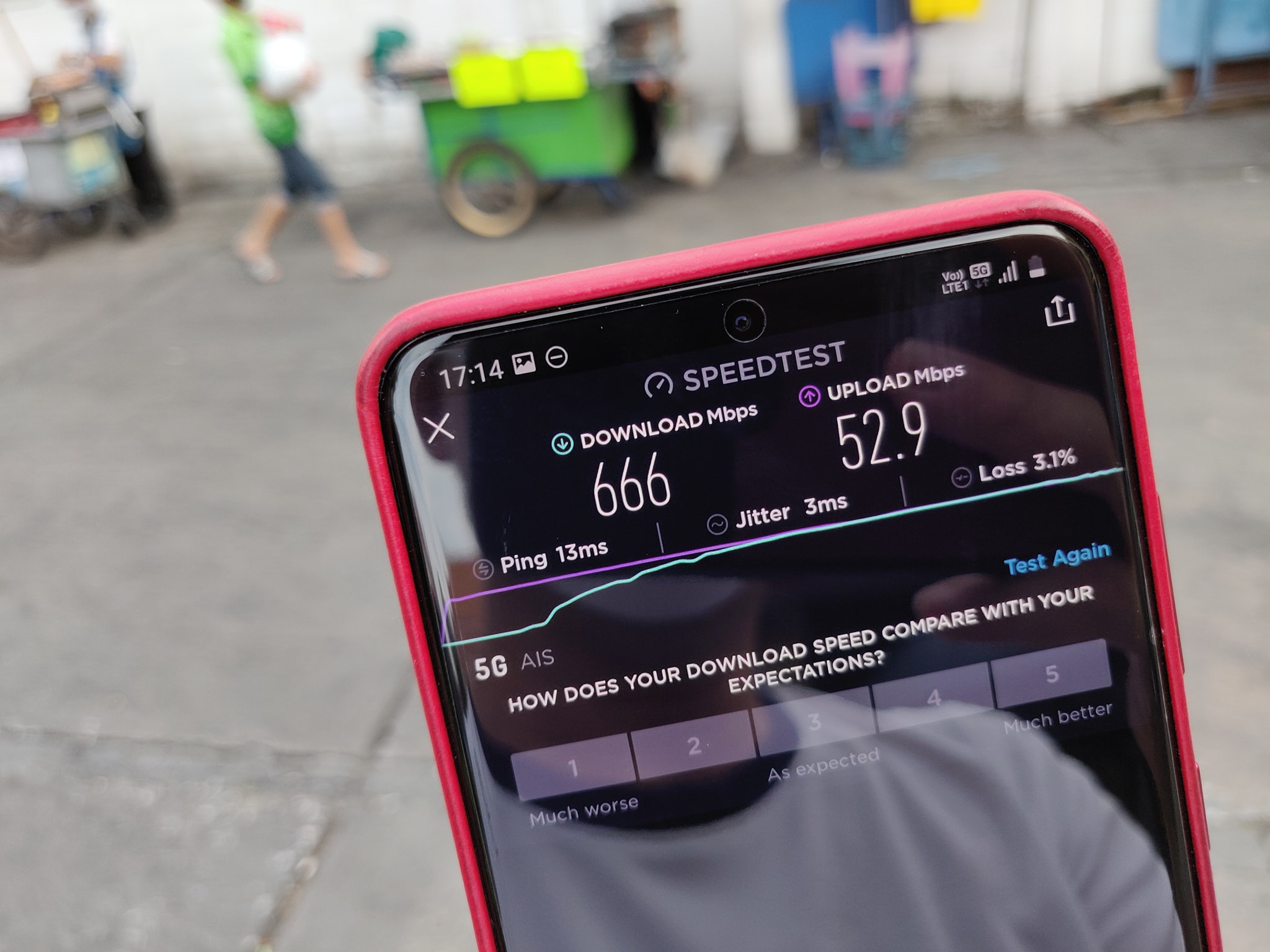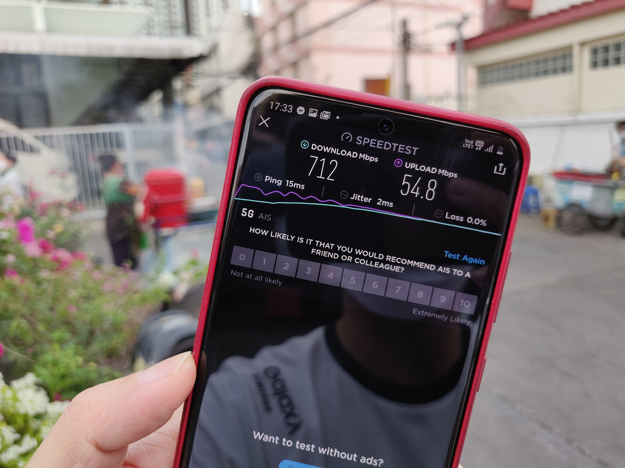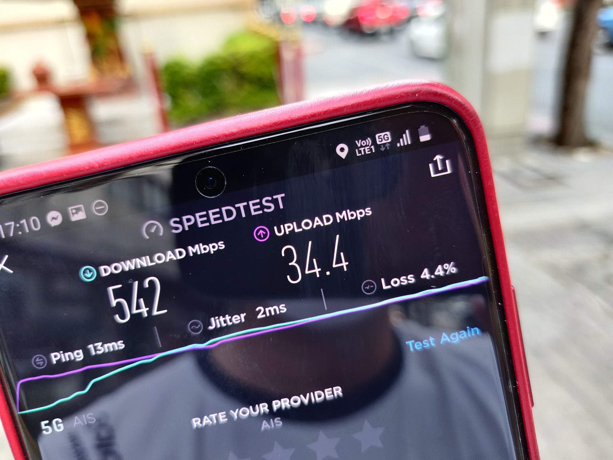และหลังจากติดตั้งอะไรเสร็จเรียบร้อย Galaxy S20 Ultra ก็จะสามารถใช้งาน 5G ในประเทศไทยบนคลื่นความถี่ 2600MHz ที่ปัจจุบันมี AIS และ TrueMove H ถือใบอนุญาตตรงนี้อยู่ได้เลยทันที ไม่ต้องปรับอะไรเพิ่มเติม (แต่พื้นที่ต้องมีสัญญาณ 5G ครอบคลุมด้วยนะ) อ้อ! และอย่าลืมเปลี่ยน Network Type ให้เป็น 5G/4G/3G/2G ก่อนนะครับ ถึงจะสามารถใช้งานอินเตอร์เน็ตบนคลื่นความถี่ 5G ได้