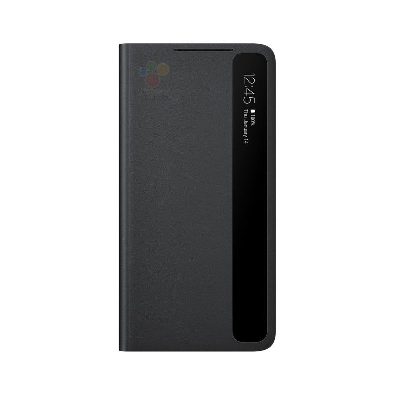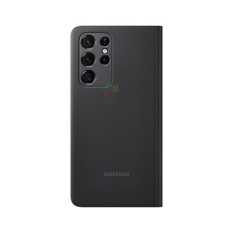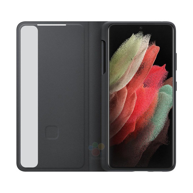 ภาพเคส S View Flip Cover ของ Galaxy S21 Ultra จะมีความกว้างกว่าปกติเล็กน้อย นั่นก็เป็นเพราะช่องสำหรับเสียบ S Pen ที่ด้านในนั่นแหละครับ ส่วนตัวปากกานั้นจะมีดีไซน์เรียบ ๆ คล้ายคลึงกับ Galaxy Tab S7 และจะไม่มีแป้นที่ด้านท้ายเหมือนอย่างใน Galaxy Note (ซึ่งก็ไม่จำเป็นต้องมี เพราะไม่ได้เก็บในตัวเครื่อง)