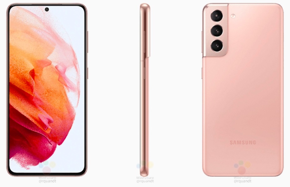 สำหรับรุ่นน้องเล็กอย่าง Galaxy S21 ที่เราได้เห็นภาพเรนเดอร์กันไปบ้างแล้วว่ามันจะมีหน้าจอแบบแบนราบขนาด 6.2 นิ้ว เจาะรูสำหรับวางกล้องเซลฟี่ไว้ตรงกลางด้านบน ส่วนด้านหลังเครื่องมีกล้อง 3 ตัว เรียงเป็นแนวตั้งวางอยู่บนโมดูลที่มีดีไซน์แบบเป็นชิ้นเดียวกับขอบเครื่อง
