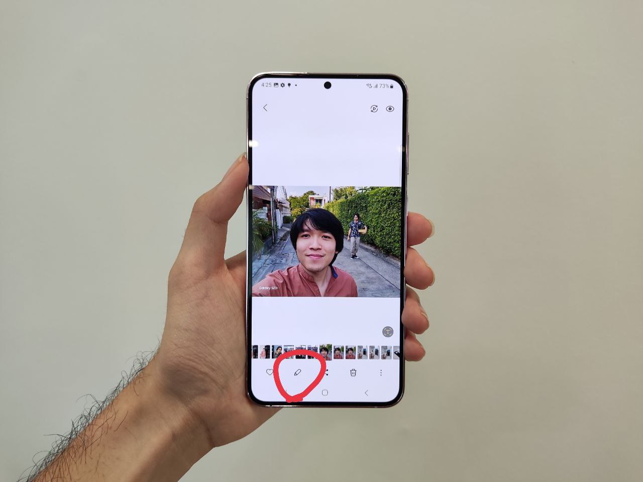 เปิดแอป Gallery ของ Samsung > เลือกภาพที่ต้องการลดเงาสะท้อน