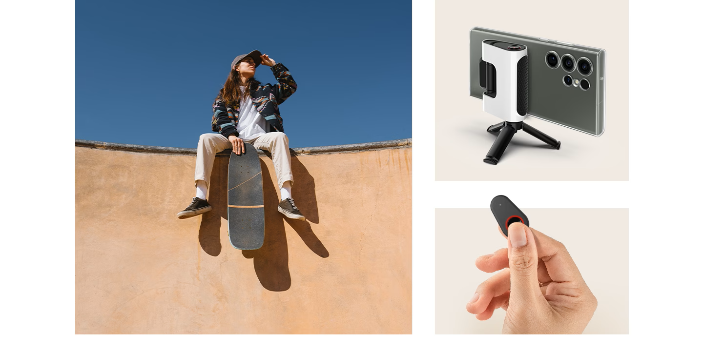 Camera Grip Stand โมดูลแบบที่จับกล้องมาพร้อมปุ่มชัตเตอร์ ที่สามารถกางออกมาเป็นขาตั้งกล้องจริง ๆ แถมปุ่มชัตเตอร์ยังนำออกมาเป็นรีโมตได้, นอกจากนี้ ยังมีขาตั้งเครื่องแบบบางพับเก็บได้ และยังมีสายคล้องมือหลากหลายดีไซน์ให้เปลี่ยนด้วย