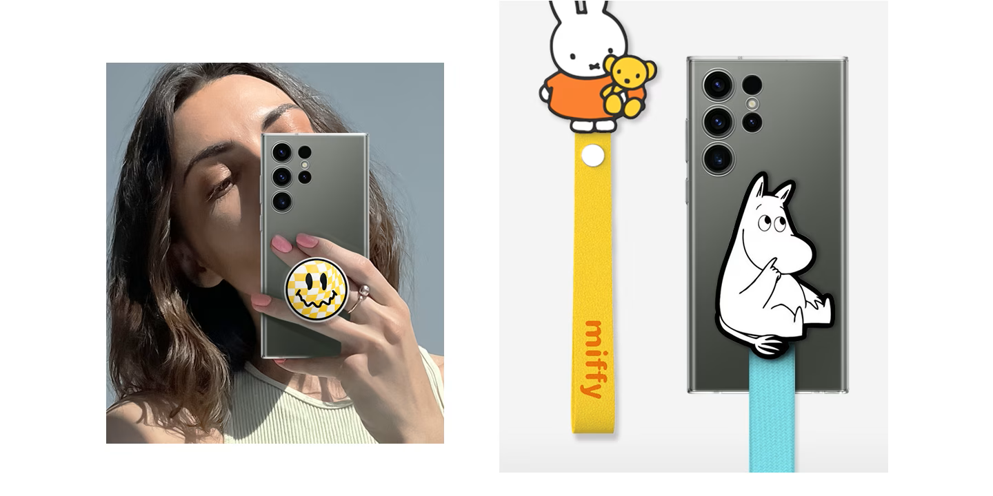 ถึงแม้ว่าเราจะเคยเห็นเคสรุ่นนี้มาแล้วบน Galaxy Z Flip 4 และ Z Fold 4 แต่นี่ถือเป็นครั้งแรกของ Samsung Galaxy S23 Series ที่มีเคสซิลิโคนพร้อมสาย Strap คล้องมือเป็นครั้งแรก ซึ่งในครั้งนี้ สาย Strap ก็มาพร้อมดีไซน์แบบใหม่ที่เจาะรูไว้ให้เราได้ใส่ตัวตุ๊กตุ่นเล็ก ๆ ได้อย่างอิสระ (หากใครนึกไม่ออกให้นึกถึงรองเท้า Crocs ที่มีตัวติดรองเท้า Jibbitz ไว้ตกแต่งตามรูเพิ่ม) โดยตัวเคสซิลิโคนพร้อมที่จับสำหรับ Galaxy S23 Series ทุกรุ่นมีราคาอยู่ที่ 1,490 บาท