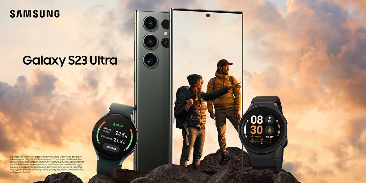 ภาพโปรโมทการขายที่หลุดออกมาล่าสุดนี้ มาแบบครบ ๆ ทั้ง 3 รุ่น ซึ่งก็ไม่มีอะไรมากนอกจากการโชว์ภาพตัวเครื่องร่วมกับอุปกรณ์เสริมชิ้นอื่น ๆ อย่าง Galaxy Buds2 Pro และ Galaxy Watch5 เท่านั้น