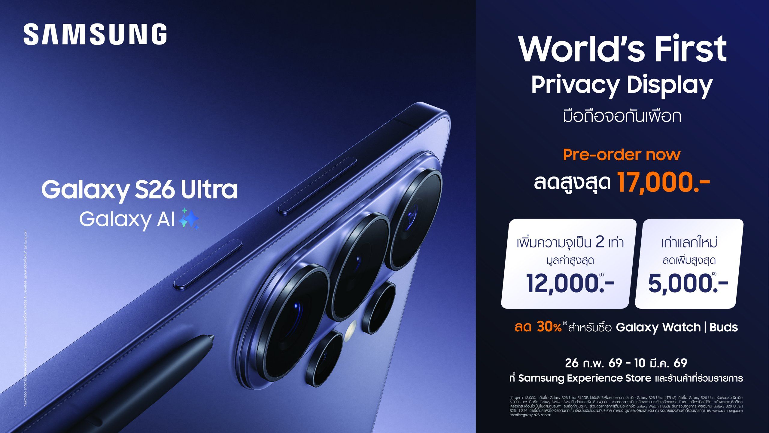 โปรโมชันพิเศษสำหรับผู้ที่ Pre-order ล่วงหน้า Samsung Galaxy S26 Series ทุกรุ่น