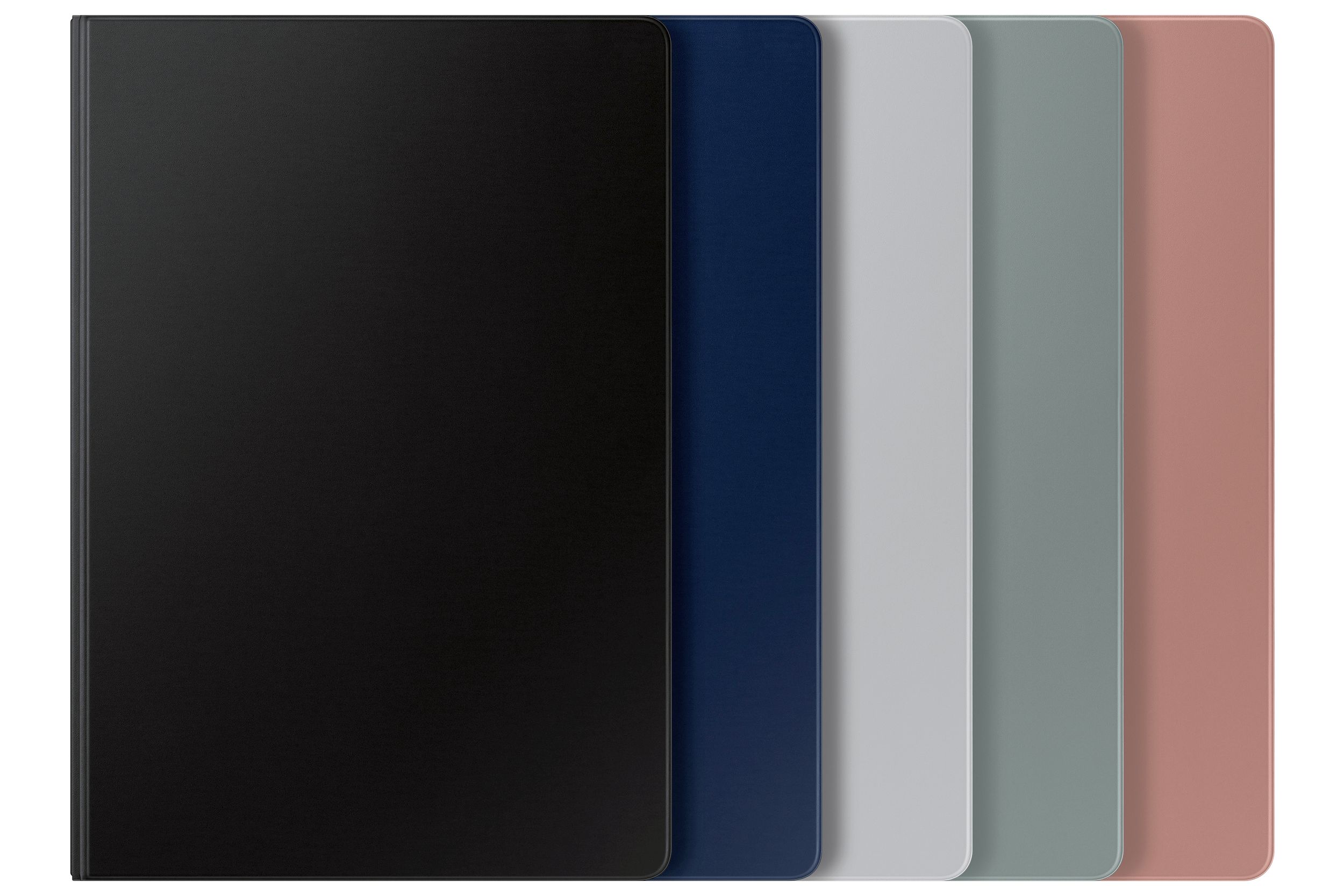 ส่วนภาพเรนเดอร์อีกชุดเป็นอุปกรณ์เสริม Book Cover ที่มีหน้าตาเหมือนของรุ่นพี่อีกแล้ว เพราะมีที่เก็บปากกา S Pen อยู่บริเวณบานพับด้านใน และเคสด้านหลังก็เว้นที่เอาไว้ให้สำหรับแปะชาร์จปากกาได้ นอกจากนี้เคสยังมีให้เลือกถึง 5 สี คือสีดำ สีน้ำเงิน สีขาว สีเขียวอ่อน และสีชมพู