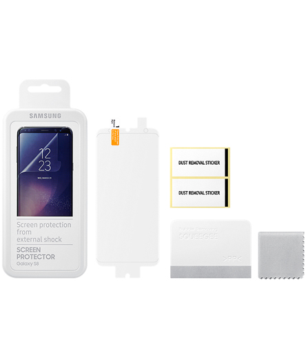 รอบนี้ Samsung ทำฟิล์มกันรอยของ Galaxy S8 และ S8+ ขายเองด้วย ดังนั้นแน่นอนว่าขนาดและการเว้นช่องต่างๆ รวมไปถึงส่วนที่โค้งรับหน้าจอจะพอดิบพอดีที่สุด