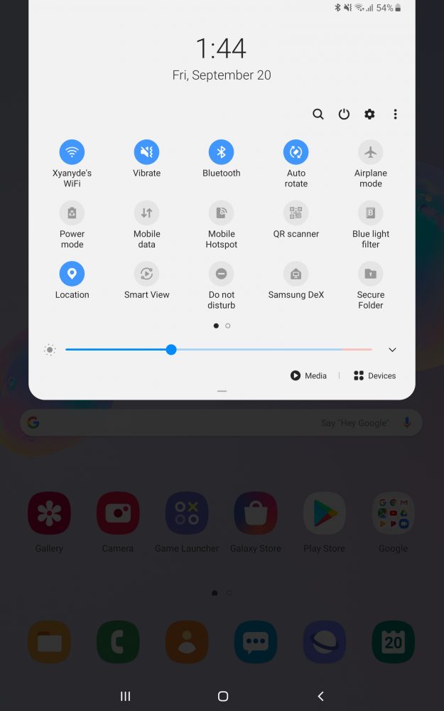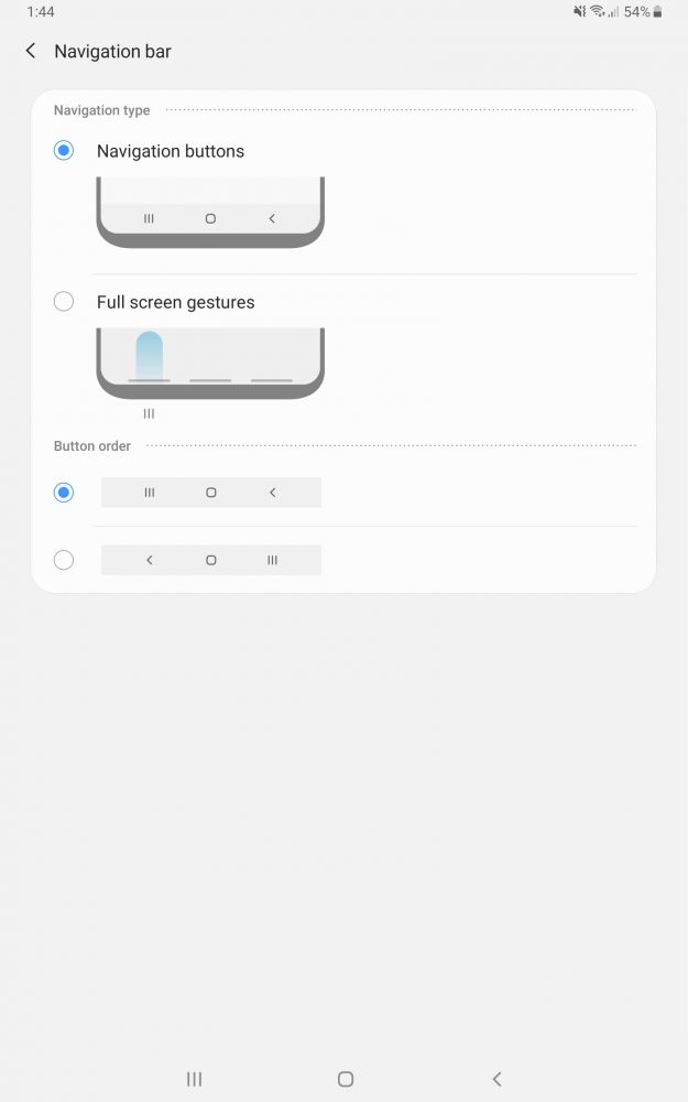 หน้าตาการใช้งาน One UI ของ Galaxy Tab 6 ก็แทบจะไม่ต่างกับมือถือ Samsung Galaxy ทั่วไป (แค่ขยายขนาดหน้าจอ) โดยสามารถเลือกได้ว่าจะใช้ปุ่ม Navigation แบบเดิม (Back, Home, Recent Apps) หรือจะเป็นแบบ Gestures ใช้นิ้วปัดเอาแทนก็ได้