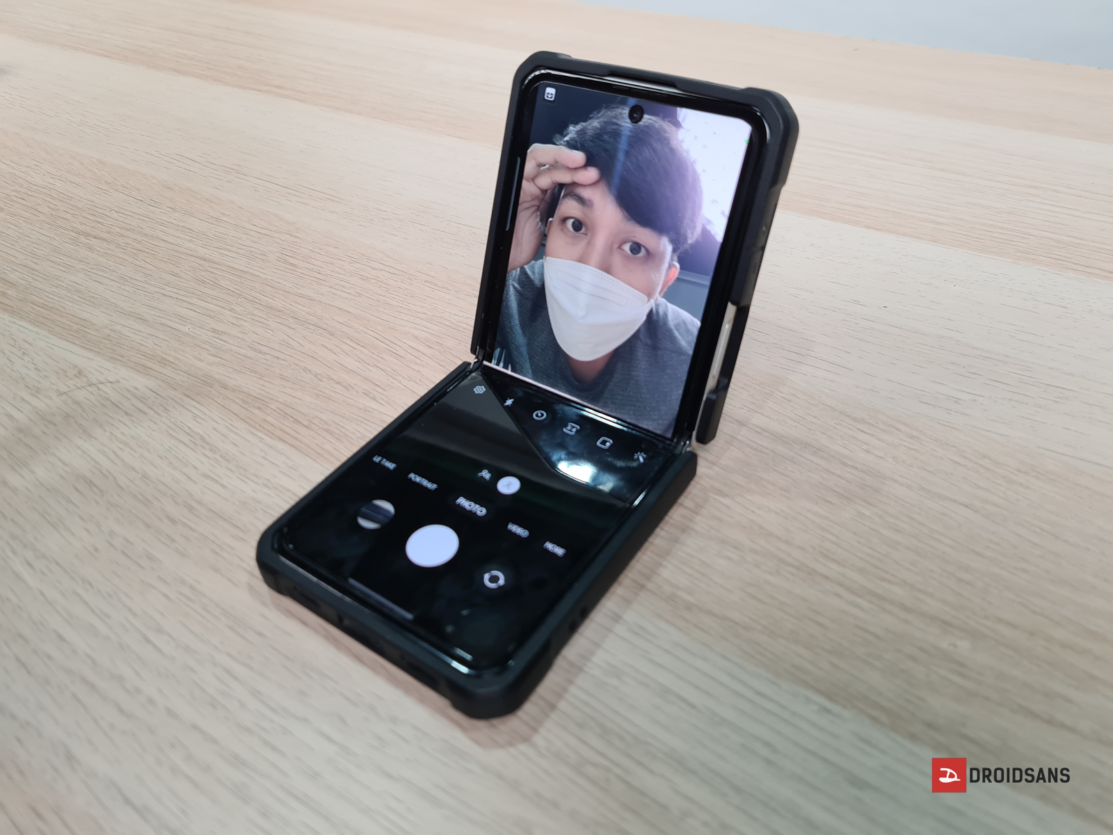 นึกถึงฟอร์มแฟคเตอร์การถ่ายวิดีโอด้วยกล้องสมัยเก่า เรามักจะเห็นว่ากล้องเหล่านั้นชอบออกแบบมาให้คนถือถ่ายด้วยมือเดียว เนื่องจากเป็นวิธีหนึ่งที่ผู้คิดค้นพบว่าจะทำให้ภาพออกมาดูนิ่งที่สุด แต่กล้องมือถือปัจจุบันถ้าไม่ใช้ขาตั้งช่วยเราก็มักจะเห็นคนถือถ่ายด้วย 2 มือเป็นประจำ เพราะว่ามันถือมือเดียวไม่ถนัด Z Flip เลยเป็นรุ่นเดียวตอนนี้ที่ถือถ่ายในท่ากล้องวิดีโอแบบเก่านี้ได้ ซึ่งน่าจะเหมาะกับคนทำคอนเทนต์สุด ๆ