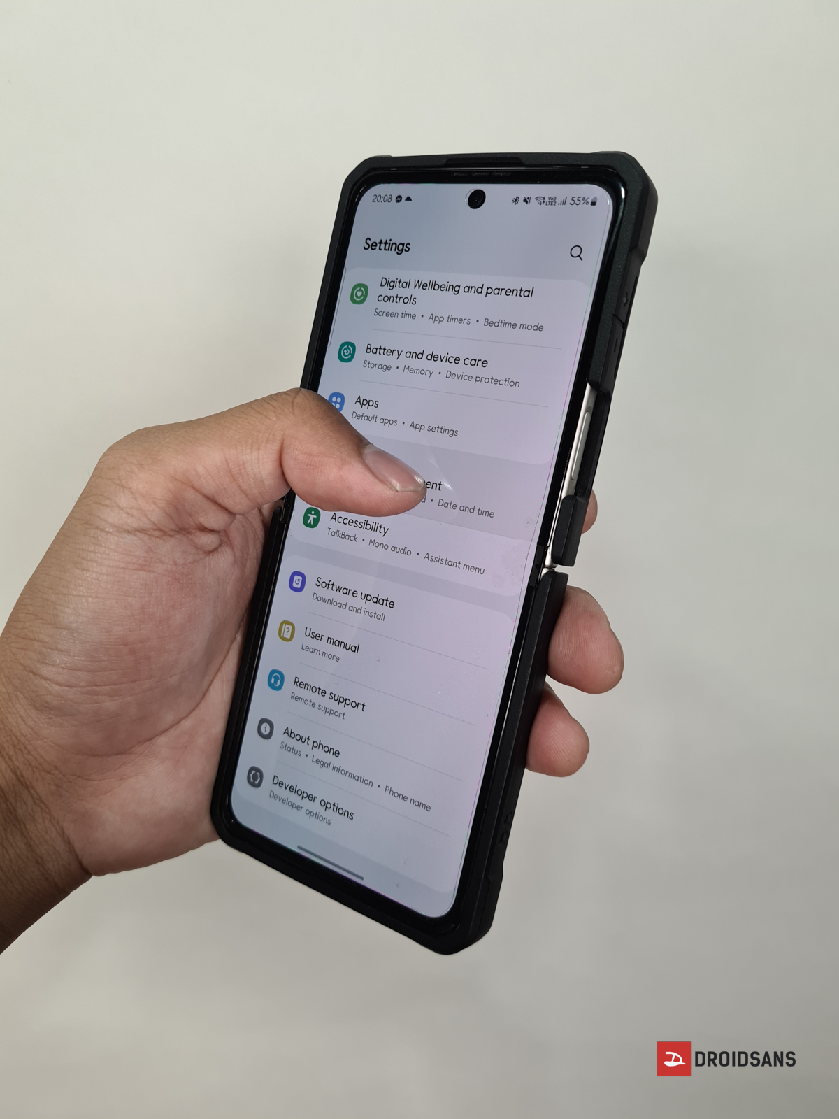 ข้อนี้จะไม่เขียนขึ้นมาเลยถ้าไม่เจอกับตัวไปหมาด ๆ ก่อนหน้านี้ถ้าใครติดตามโพสต์ DroidSans มาบ้างจะทราบว่า Z Flip 3 เครื่องนี้เคยขิตไปรอบหนึ่งแล้ว จากอาการเซนเซอร์พับจอสั่งให้จอดับเองทั้ง ๆ ที่ยังปิดไม่สนิทภายในระยะเวลาแค่ 5 เดือน ซึ่งตอนนี้ก็ได้ทำเรื่องส่งซ่อมกับศูนย์ Samsung ให้เปลี่ยนจอใหม่เรียบร้อยแล้ว