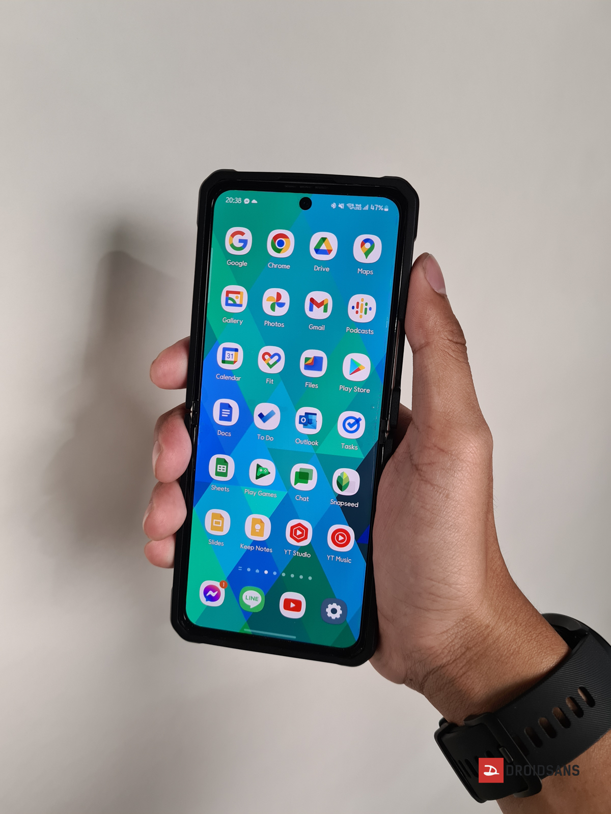 จริง ๆ ข้อนี้ยังเกี่ยวกับการเป็นมือถือจอพับหน่อย ๆ คือด้วยความที่มันต้องออกแบบมาให้พับได้ มันเลยต้องทำหน้าจอให้ยาวขึ้นกว่าปกติถึงจะดูสมส่วน ซึ่ง Z Flip 3 มีอัตราส่วนจอสูงถึง 22:9 ใช้จริงบอกเลยว่ายาวมาก ๆ ซึ่งไอ้ความยาวมากนี่แหละที่มันเป็นปัญหา เพราะกลายเป็นว่าทำให้มีแอปไม่รองรับอยู่เยอะ